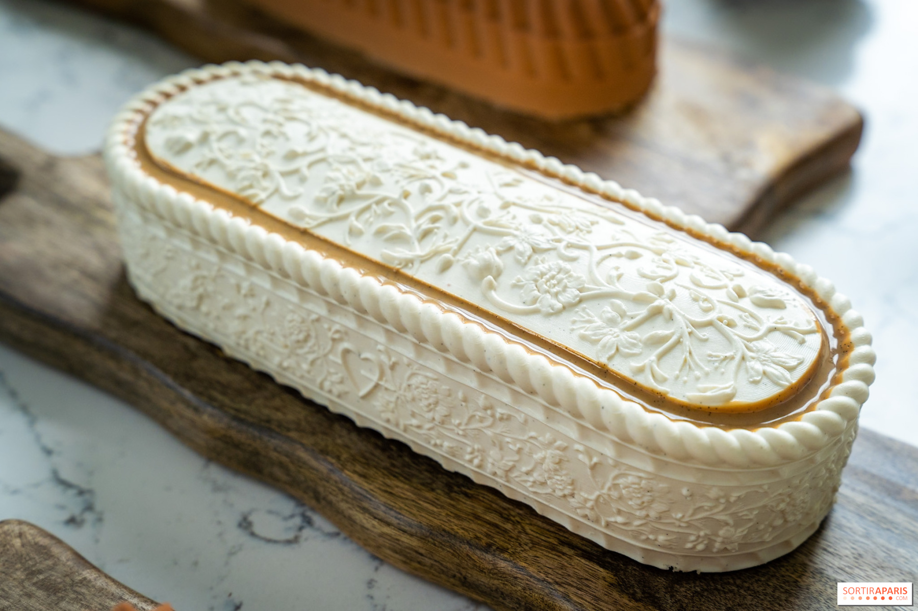 Cette bûche classique met en valeur la vanille de l'île de La Réunion, le beurre, le lait et la crème de Normandie. Une création qui s'adresse aux amateurs de saveurs franches et généreuses, travaillée avec la technique irréprochable du chef.