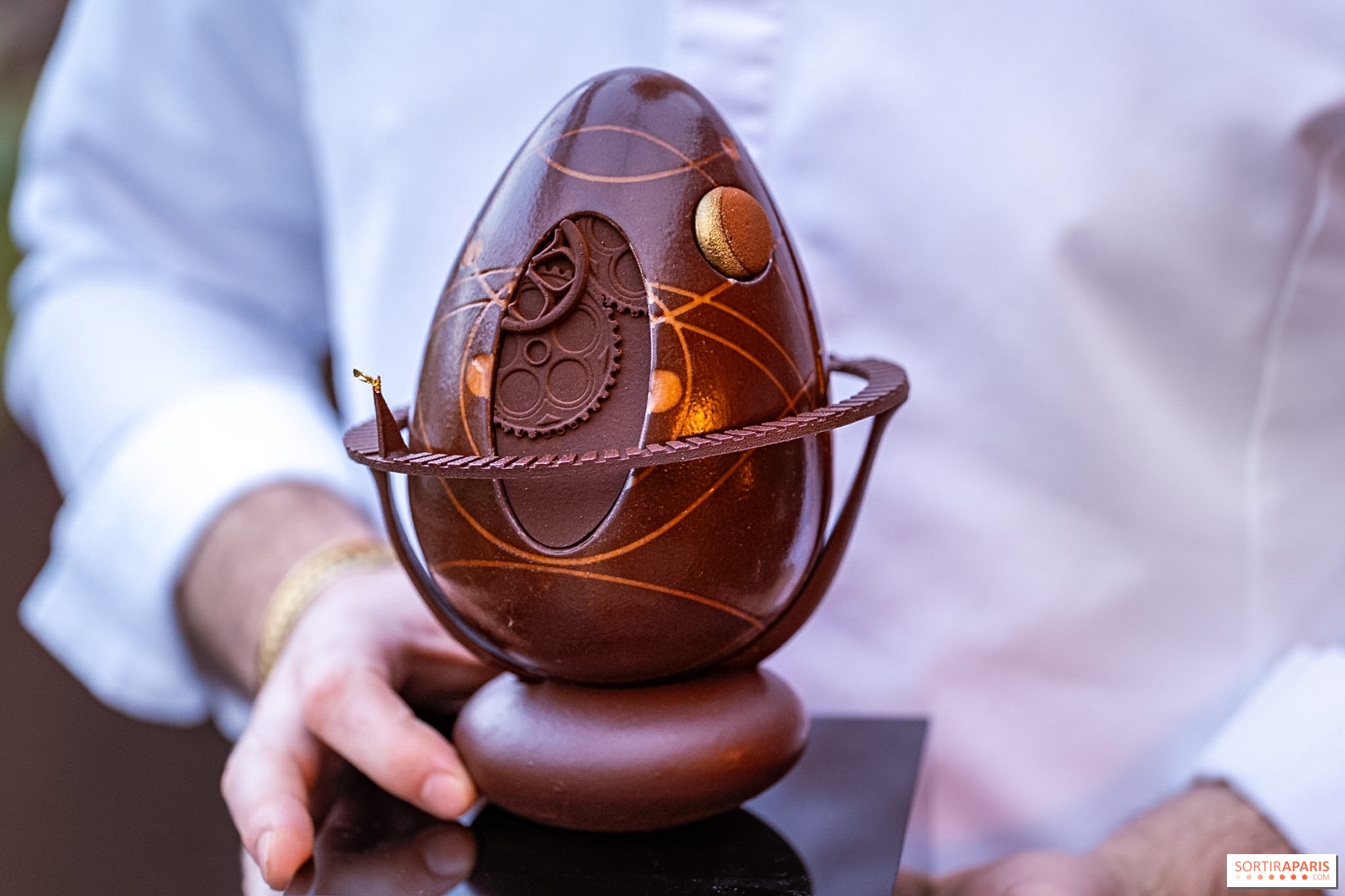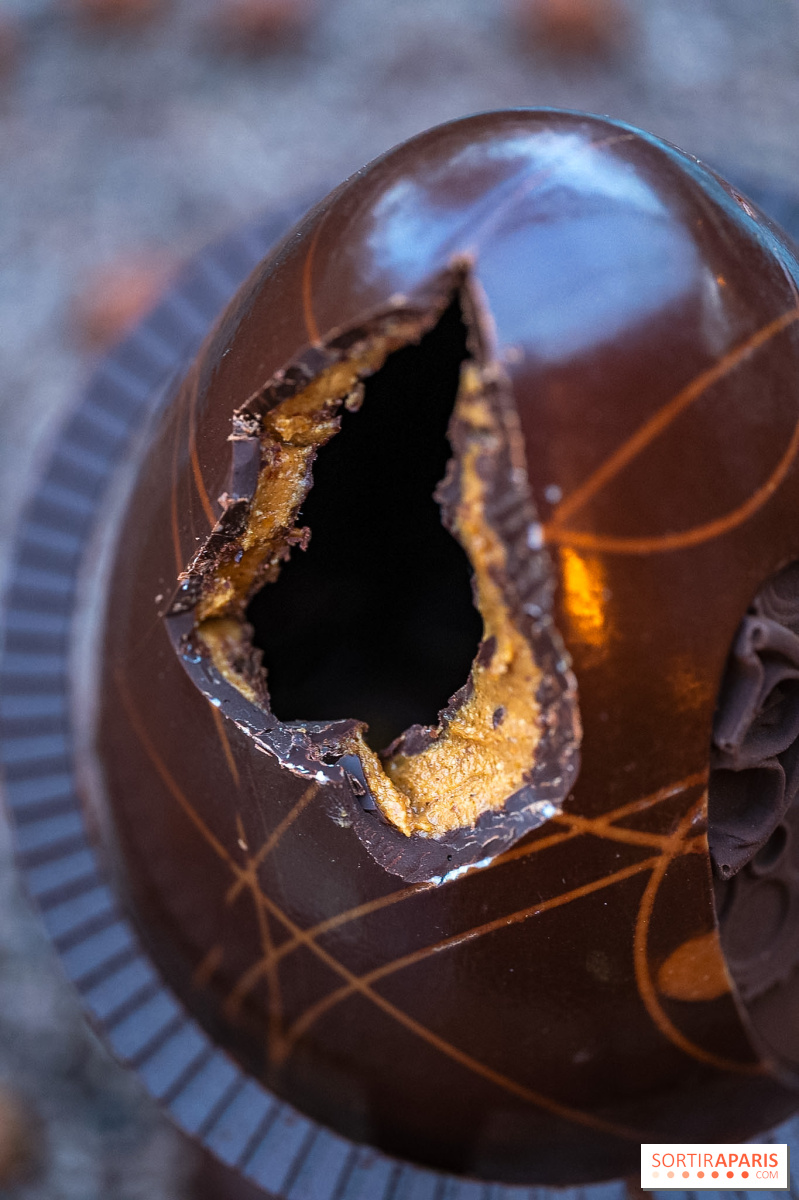 On retrouve ici la patte de Fabien Emery, chef pâtissier reconnu qui a succédé à Yann Brys à la tête des créations sucrées du groupe Evok Collection, et dont chaque création assume le goût autant que l'allure. L'oeuf pèse 600 g pour 16 cm de hauteur, et est proposé à 60 euros.