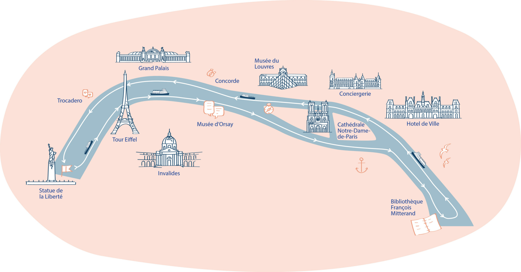 Pendant la croisière, laissez-vous émerveiller par les monuments emblématiques de Paris illuminés : la Tour Eiffel, le Louvre, Notre-Dame… L’ambiance intimiste du bateau, alliée aux lumières de la capitale, crée un décor absolument parfait pour célébrer l’amour.