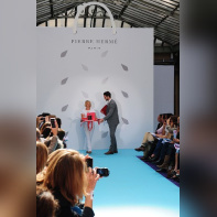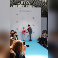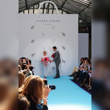 Pierre Hermé a présenté ses nouvelles créations en mettant ses fans à l'honneur lors d'un show spectaculaire et émouvant devant un parterre de journalistes triés sur le volet et sous l'œil amusé de Julie Andrieu ( France 5 ). Louis-Marie de Castelbajac qui a crée spécialement un gâteau de noël pour la maison. Un défilé gourmand, rythmé par un mix délicieusement "Rétro-Pop" du Dj parisien Michael Canitrot dans un lieu approprié : le lieu design!