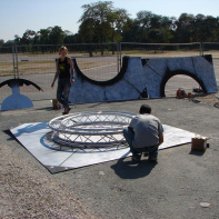 Montage des chars de la Techno Parade 2008 aux pelouses de Reuilly