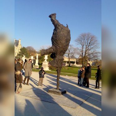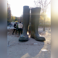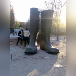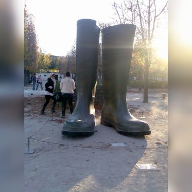 Des bottes en caoutchouc, un escarpin, un Elephant et une Deudoche aux Tuilleries