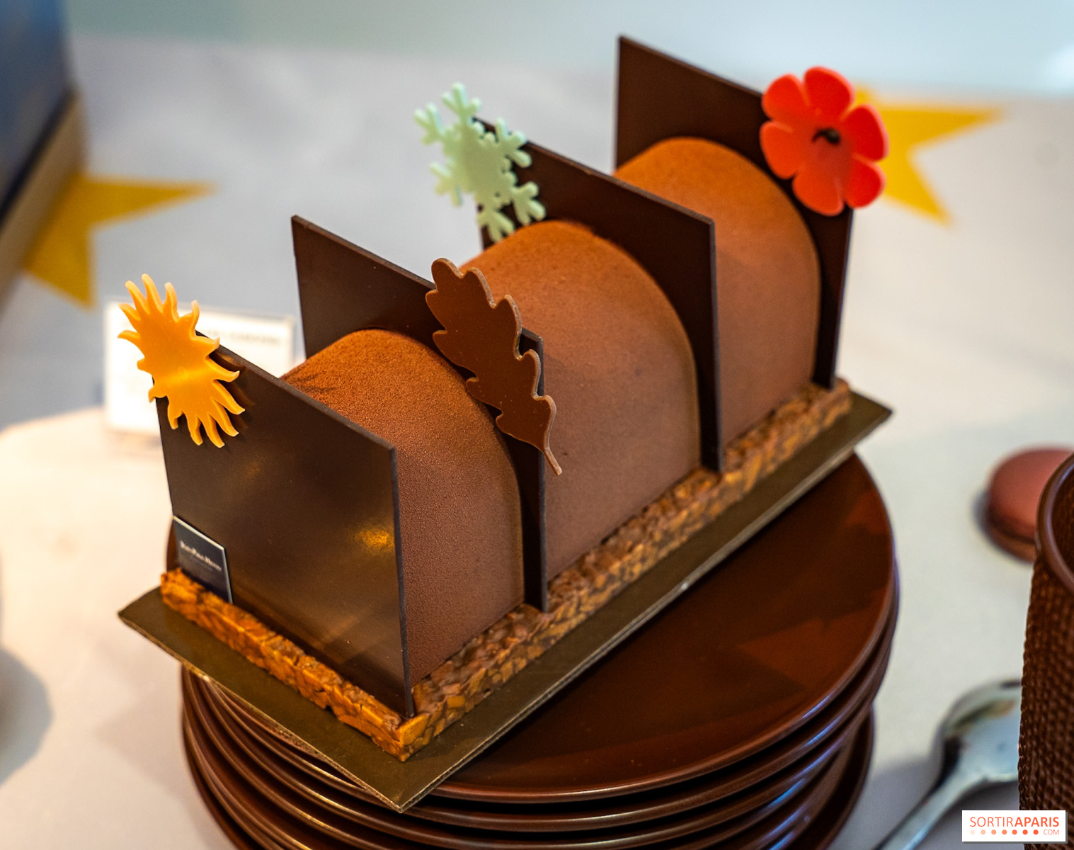 تدعونا كعكة "Quatre Saisons" إلى رحلة زمنية شهية. لماذا نذكر فقط شتاء عيد الميلاد بينما يمكننا الاحتفال بالسنة بأكملها بمواسمها؟ الصيف المشمس، الربيع المزهر، الخريف بألوانه الفيينوية... تتكون هذه الكعكة ذات النكهات الحارة والمذاق القوي للكاكاو من دوجا باللوز المقرمش، وبسكويت بان دي جين بالكاكاو، وكريم بروليه بباقة سانشو، وموس شوكولاتة داكنة من الكاميرون. وهي أيضاً موضوعة على قاعدة من الصخور باللوز المكرمل، ولكن هذه المرة بالشوكولاتة بالحليب. السعر نفسه، 67 يورو لـ 6 إلى 8 أشخاص.