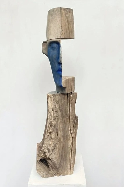 Gabriel Boudin : Blu, Sculpture sur bois Noyer et Pigments