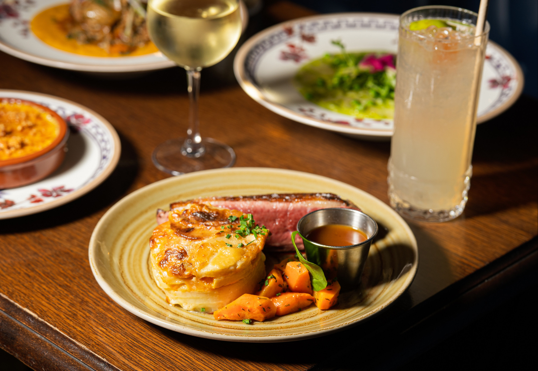 ما هو الطبق الرئيسي؟ إنه صدر البط مع الصلصة الشهيرة بالبرتقال، الذي يُعتبر من الأطباق التي تتحدث عنها المدينة بأجمعها: طري، لذيذ ومتوازن بشكل مثالي، ويعبّر بشكل رائع عن فن الطبخ في باريس.