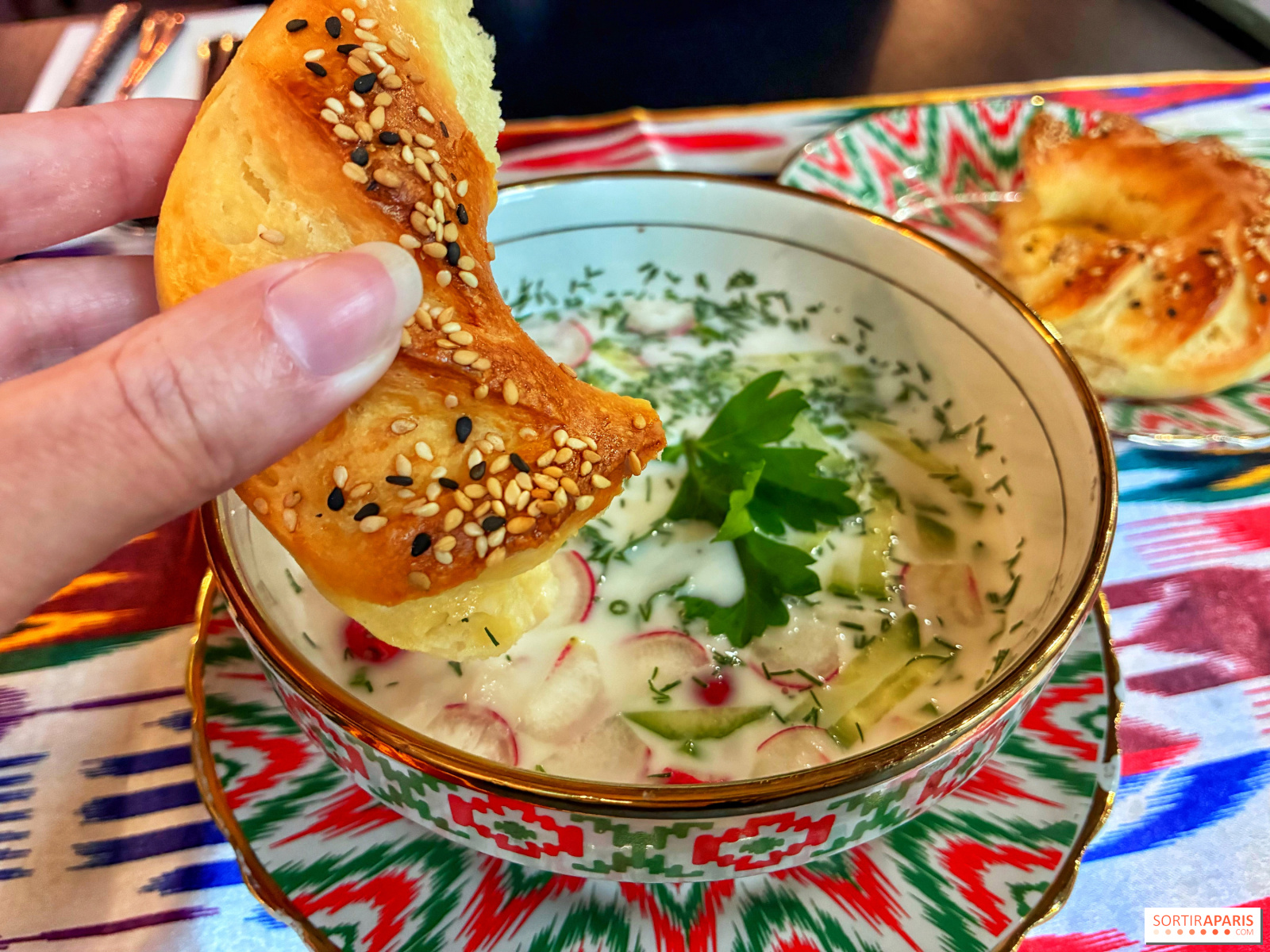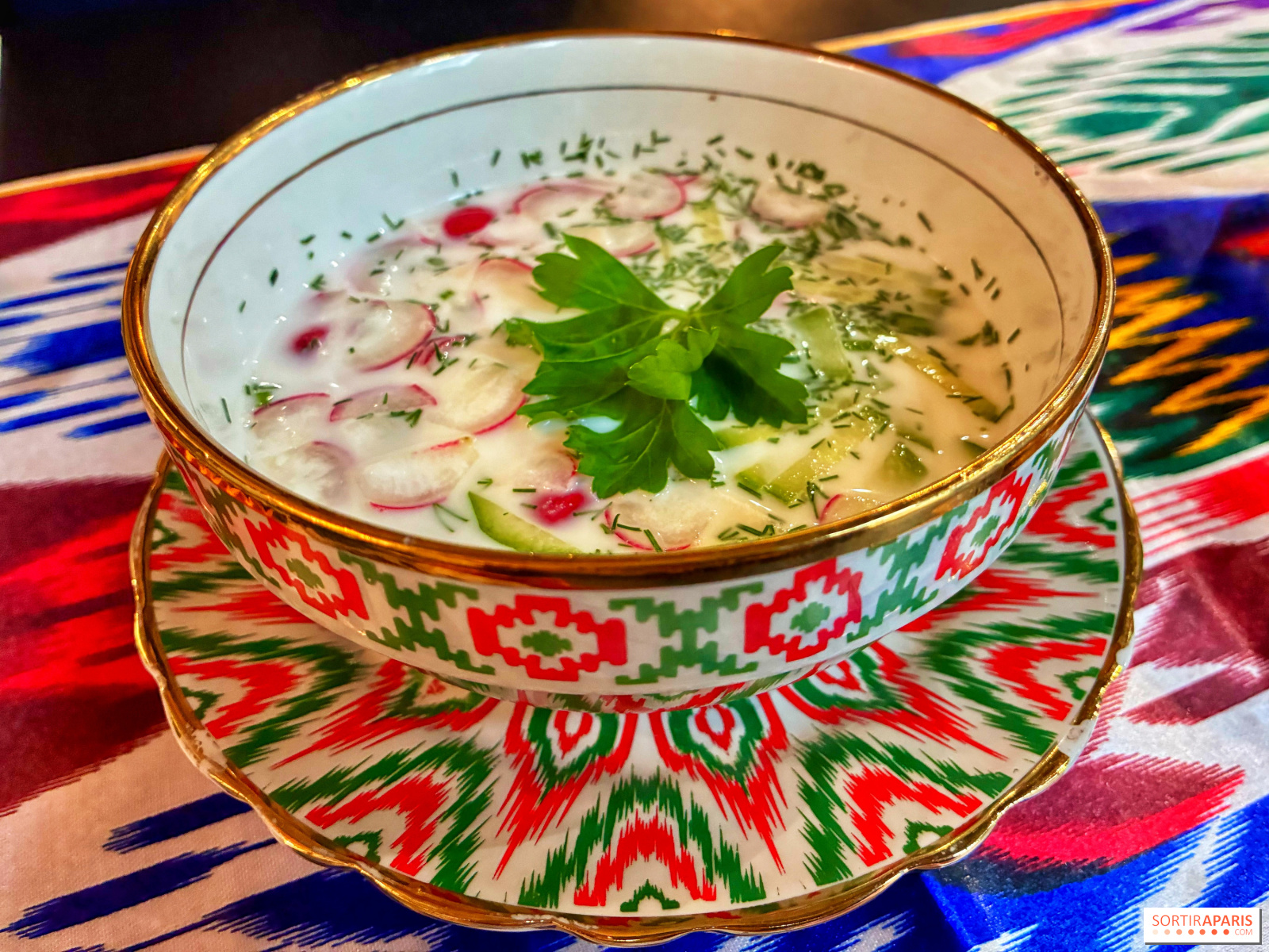 للحصول على بداية منعشة، يُعد الأوكرشكا (9€) من الأطباق الأساسية، وهي حساء بسيط يعتمد على اليُرَان، مع خيار، فجل، وشبت. خفيف ومنعش، مع نكهة خفيفة من الطابع الحمضي لليُرَان، مما يمنحه طابعًا ناعمًا وممتعًا بكل بساطة.