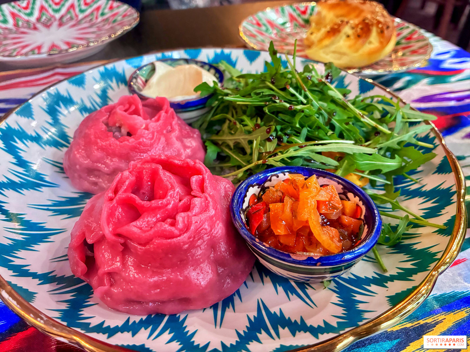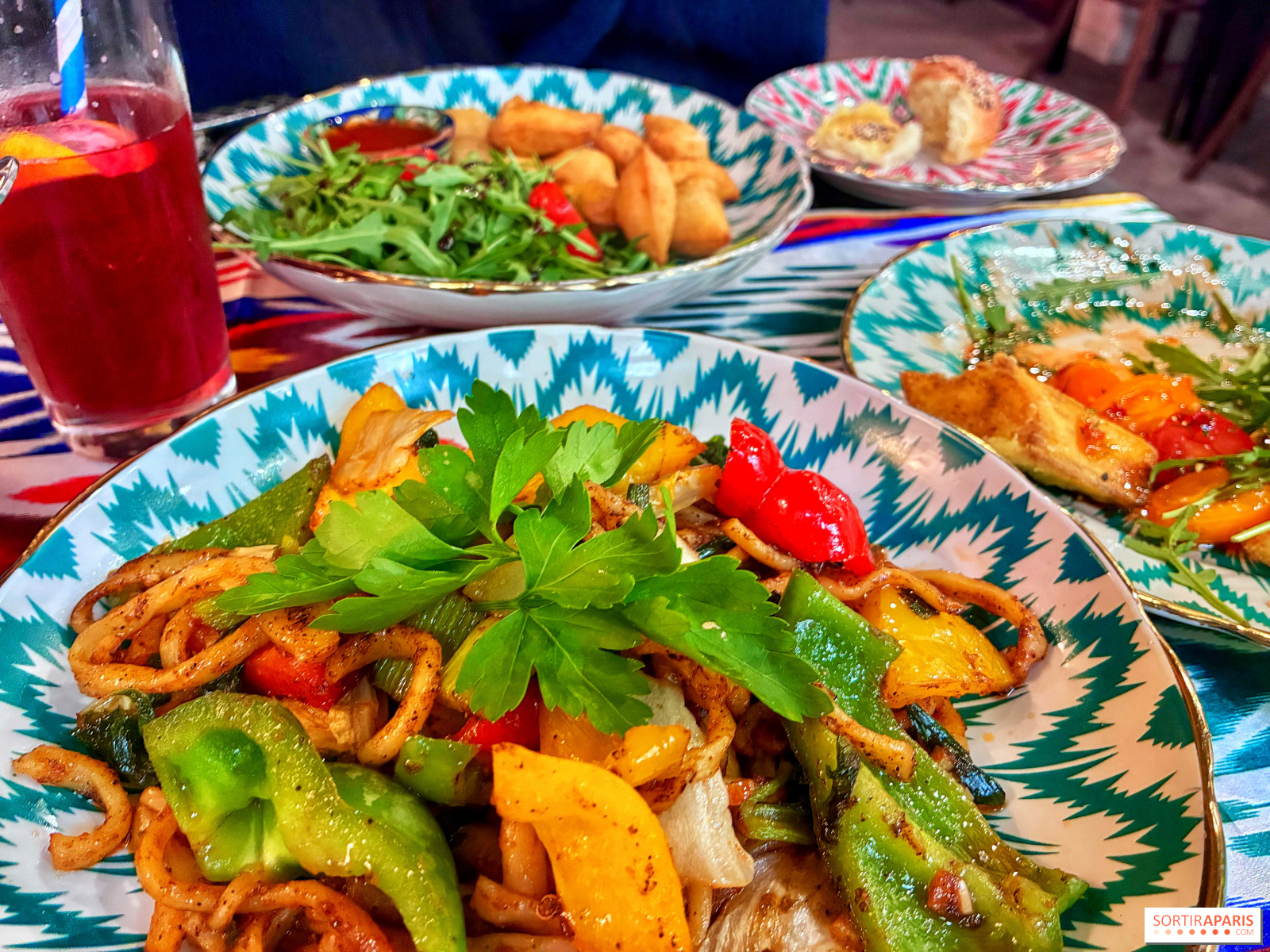 يُذكر أن المطبخ الأوزبكي مُصمم تاريخيًا لدعم المسافرين، لذا فهو غني بالنكهات وليس أخفّها. حسب حجم معدتك، ننصحك بالبدء بكميات صغيرة، ويمكنك طلب المزيد إذا شعرت بالجوع، حتى لو رغبت في تذوق كل شيء! بالإضافة إلى ذلك، هناك قائمة تذوق مقابل 33€ للاستمتاع بمجموعة كاملة من الأطباق.