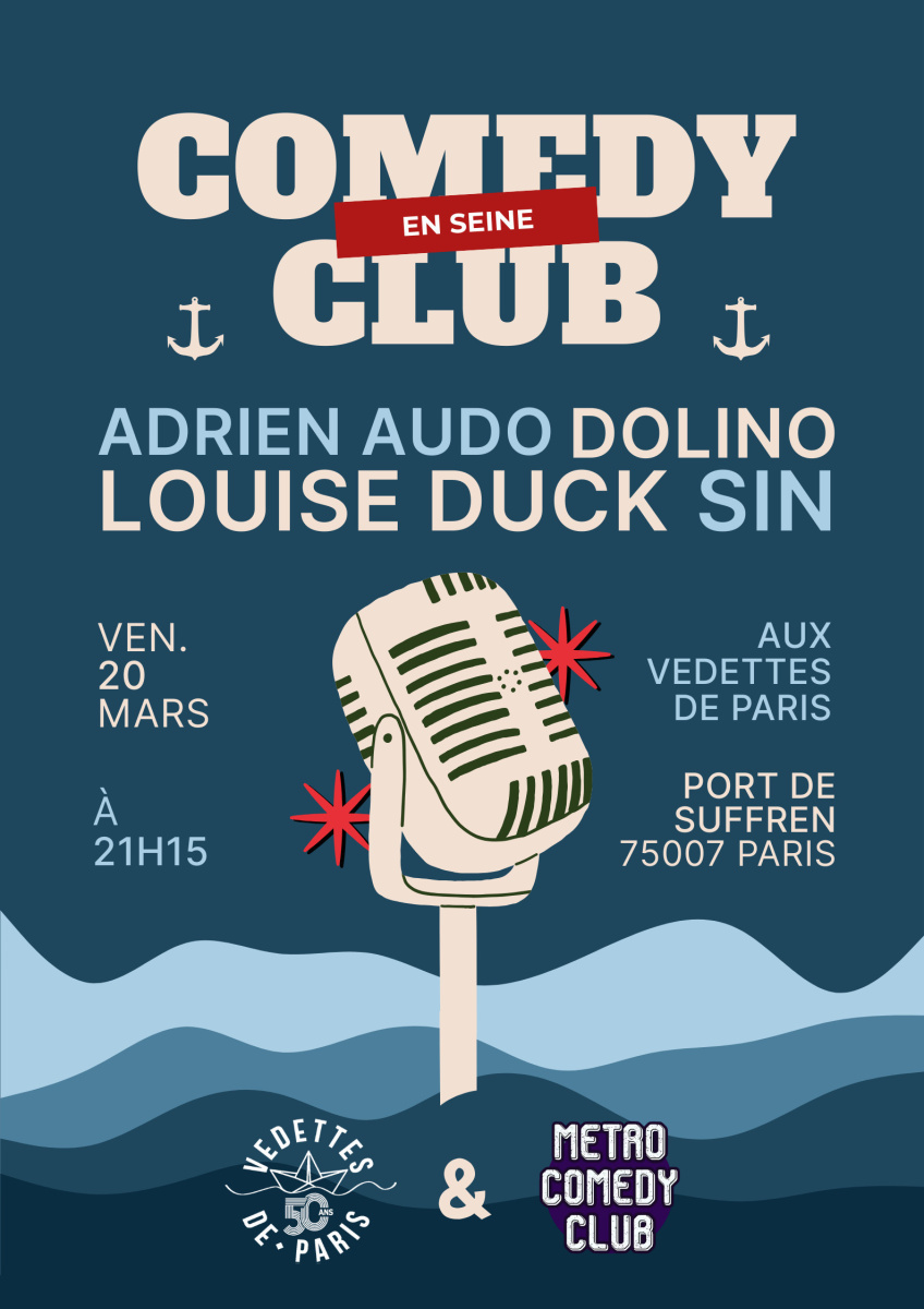 Le 20 mars à 21h15, la Croisière Comedy Club propose une expérience unique : un spectacle de stand-up à bord d’un bateau en navigation sur la Seine, imaginé par Vedettes de Paris et le Métro Comedy Club.