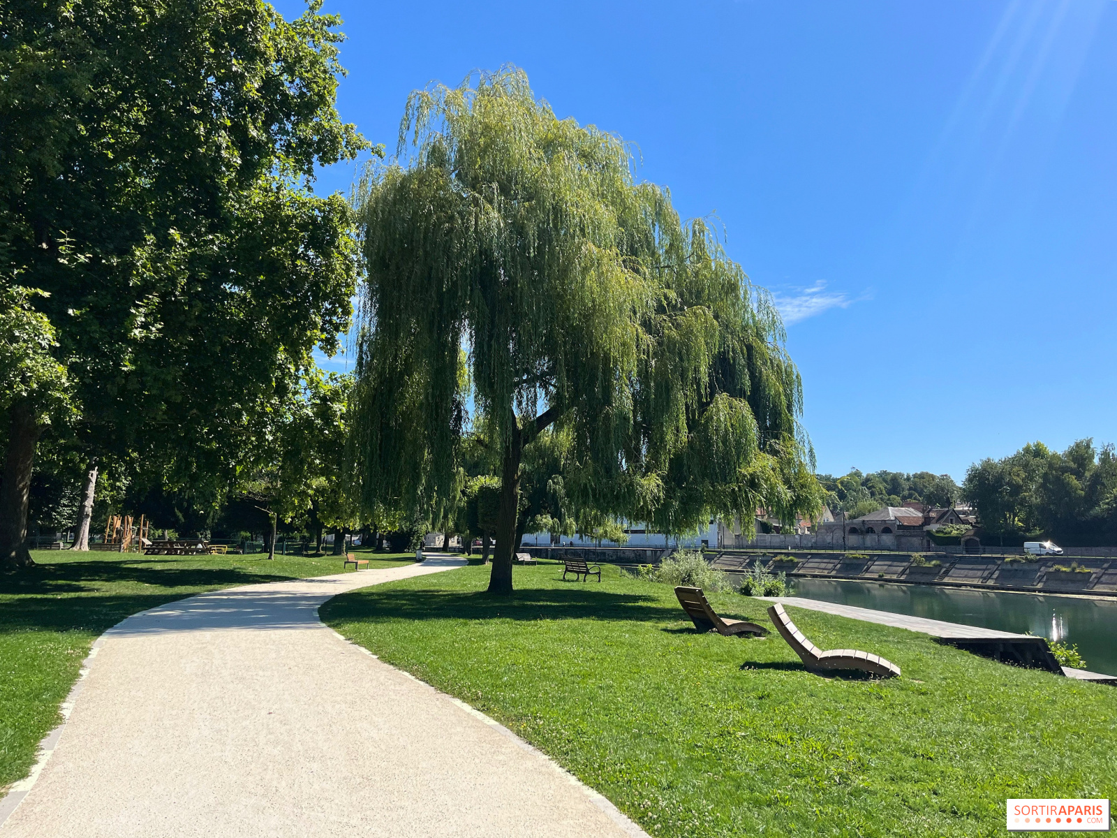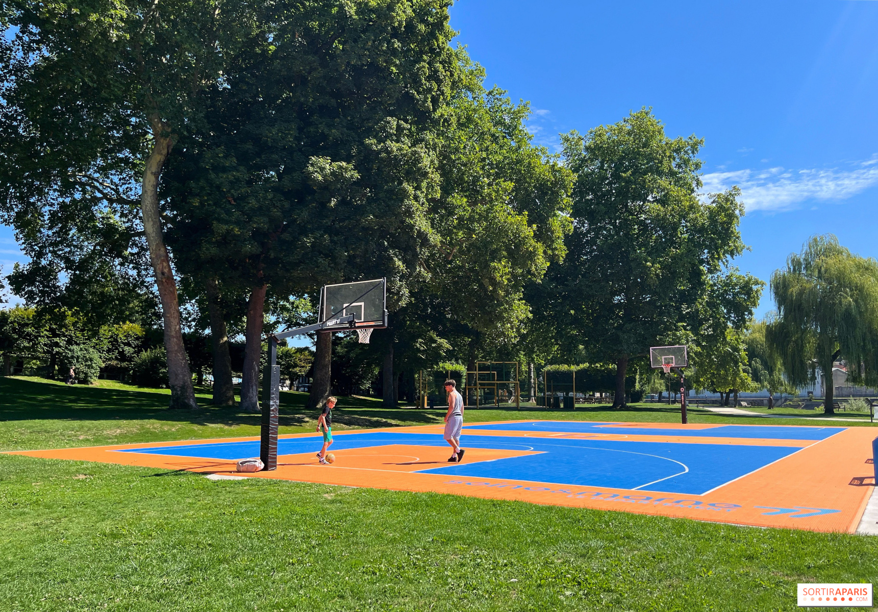 Sur place, un grand terrain de basket, un skatepark, un espace de remise en forme en extérieur, des bancs et des chaises longues pensées à la façon d’un solarium vous permettent de faire une pause en longeant les bords de Marne ou simplement, en regardant cette dernière s’écouler lentement et les bateaux y passer. Pour les enfants, une aire de jeux en plein air est également installée sur place, destinée aux pitchounes âgés de 1 à 12 ans.