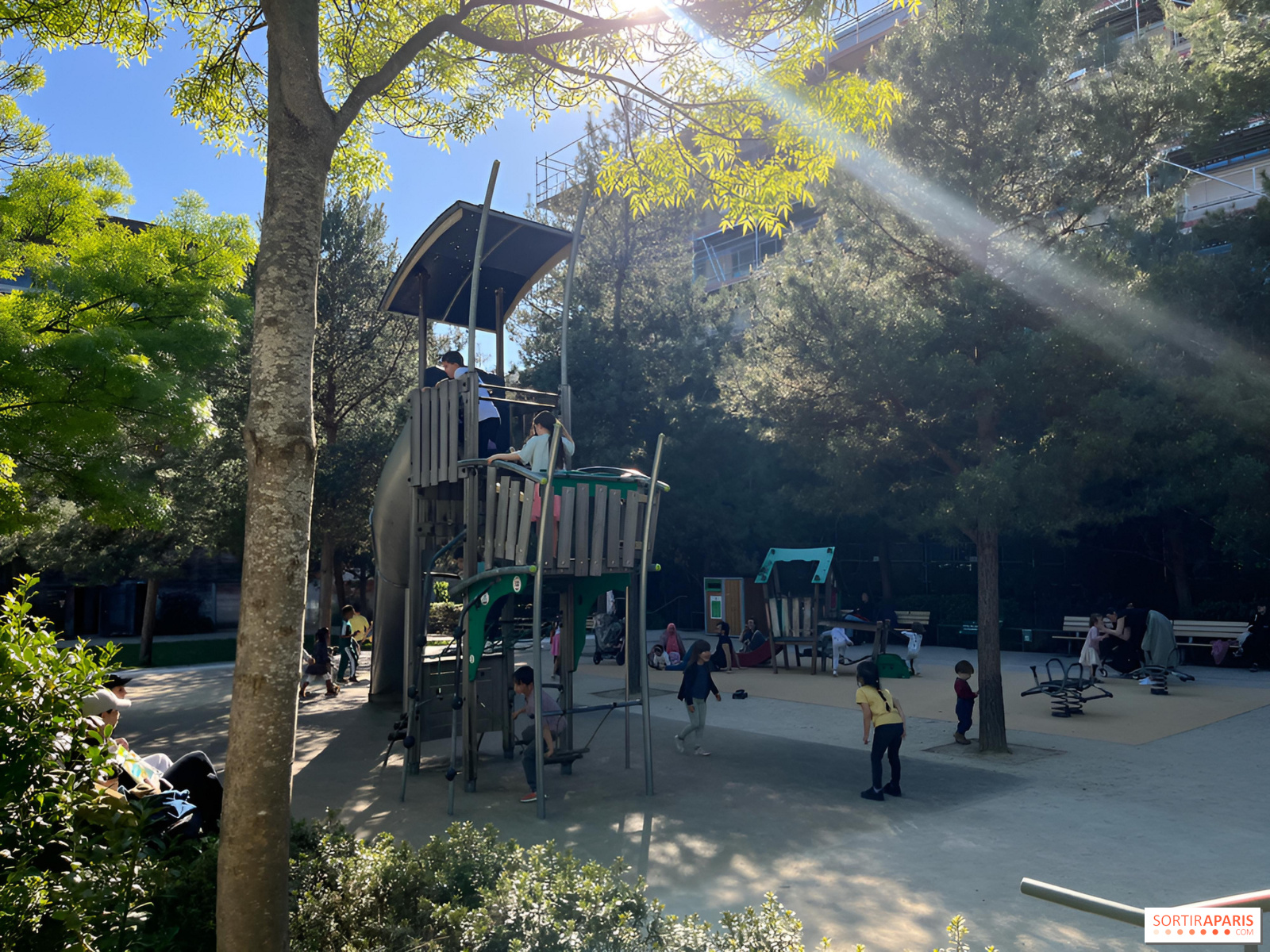 Sur place, on trouve de nombreuses installations pensées pour tous les publics : les enfants avec une belle aire de jeux pour se dépenser (et des bancs installés tout autour pour faciliter la surveillance des parents et des nounous), des tables de ping-pong pour les sportifs en herbe, un terrain de basket, un autre de football... Sans oublier l'espace canin consacré à nos amis à quatre pattes ainsi que les tables de pique nique et autres aires de repos pour en profiter aux beaux jours !