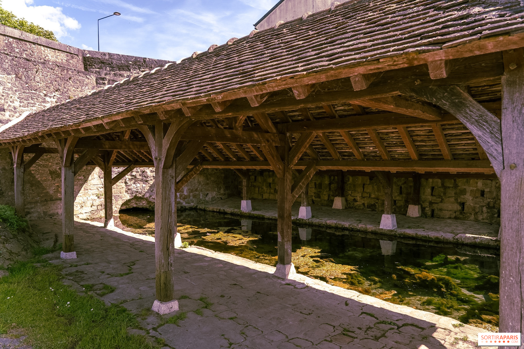 En longeant le quai Victor Hugo le long de la rivière des Petits Fossés, on tombe presque par hasard sur l'un des lavoirs de Nemours, discret témoin du quotidien des siècles passés. Plusieurs lavoirs jalonnent en réalité les rives du Loing, notamment sur le quai Victor Hugo et face au château, sur la rive opposée. Ces abris ouverts sur l'eau, où les femmes du bourg venaient battre le linge, font partie de ces petits patrimoines qu'on ne cherche pas et qu'on est heureux de trouver. Dans l'ancienne basse-cour du château, accessible par une ruelle pavée, on peut également en apercevoir un autre, accompagné des vestiges d'une chapelle du XIIIe siècle et d'une grange aux dîmes du XVIe siècle. Ce genre de détail donne au parcours une vraie profondeur, loin des circuits balisés. On prend le temps, on s'arrête, et Nemours révèle alors ses couches d'histoire les plus discrètes.