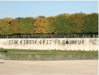 Jacques Villeglé est connu pour ses messages forts, écrits avec un alphabet "socio-politique". Pour la Nuit Blanche, il réalise un grand graffiti noir, une invitation à continuer son chemin.
