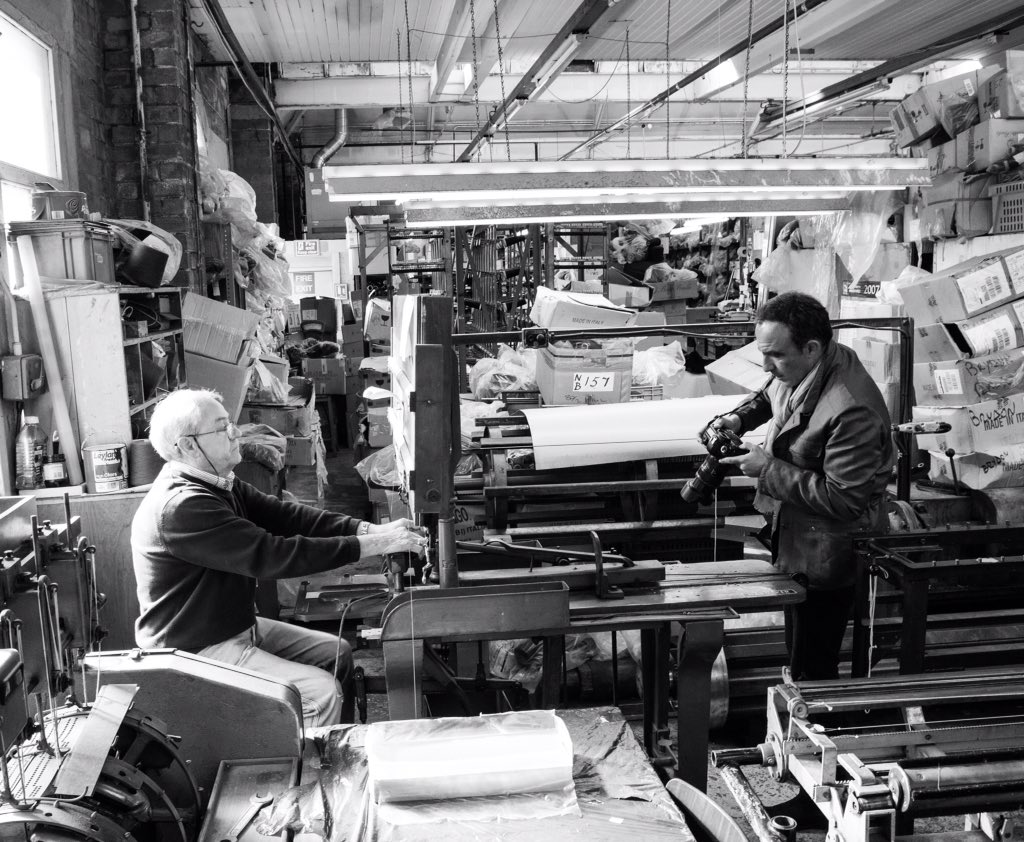 Mais l'homme ne cache plus son amour pour la photographie, qu'il pratique de façon quasi-journalistique, guettant les gestes, documentant les décors et les habitudes de ses sujets. Dans la Maison Dormeuil, il décrit le prestige de cette entreprise vieille de 174 ans par le soin et l'application de ses précieux employés. Ses photographies noires et blanches s'invitent au-dessus des machines et des doigts experts.