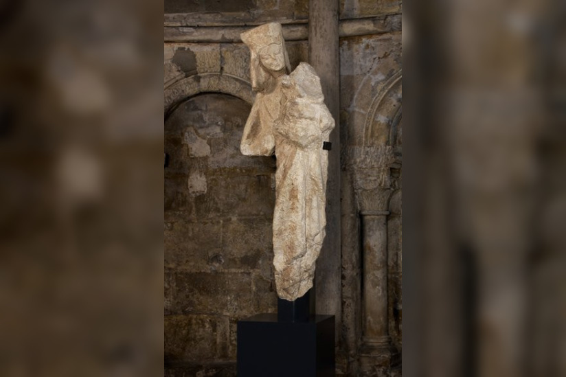 Constituée de trois fragments de pierre découverts en 1999 au momment d'un chantier de fouilles rue de Furstemberg (Paris 6e), la sculpture de la Vierge à l'enfant, sans doute destinée à orner le portail de l'ancienne chapelle de la Vierge, est restée inachevée - probablement à la suite d'un accident de taille - et réemployée dans les fondations d'un mur.