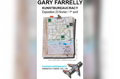 Avec le sérieux qui sied à tout bureaucrate despotique et obsessionnel, Gary s'enferme tous les jours dans son minuscule bureau - son cockpit, comme il l'appelle - et dessine, colorie, coupe, colle, peint, transforme. Là où certains artistes jouent à soustraire, lui additionne, ajoute, cumule, recycle. Et de la même façon que son monde imaginaire prend forme et se développe, ses œuvres se dilatent en occupant les espaces de la Galerie : partout des tableaux de divers formats, des objets détournés, des cartes retravaillées, des meubles contenant d'énormes dossiers. Pas de matières nobles ici, plutôt des matériaux pauvres tels que le carton, la toile brute, des petites planches en bois, des pochettes en plastique, et des milliers de feuilles de papier qu'il recycle à sa guise. Et comme tout bureaucrate qui se respecte, il fiche et répertorie tout : même les petits bouts de papier qu'il découpe en forme de losange et qu'il numérote avant de les coller ensemble pour composer un nouveau tableau.