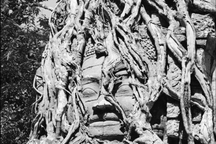 Le visiteur découvre ici les différentes périodes qui ont marqué les fouilles et travaux d’Angkor à travers 108 photographies (1860-1960) des temples avant leur dégagement, alors que des arbres immenses enserrent sanctuaires et reliefs, puis durant et après leur restauration.