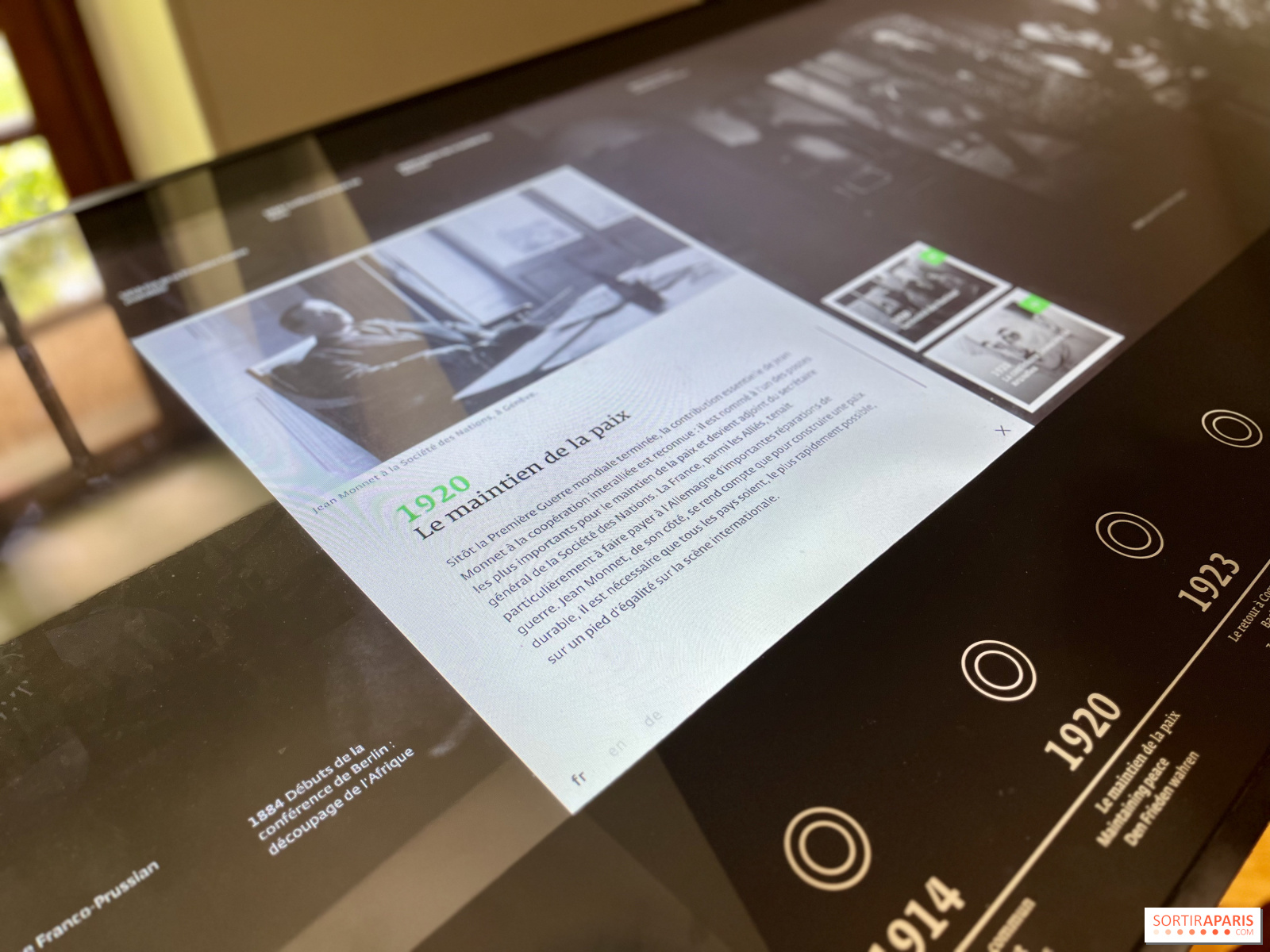 À l’étage, autrefois habité par ses filles, une exposition permanente retrace le parcours de Jean Monnet, depuis sa jeunesse dans une famille de négociants en cognac jusqu’à ses missions internationales pour la Société des Nations, en passant par ses années américaines.