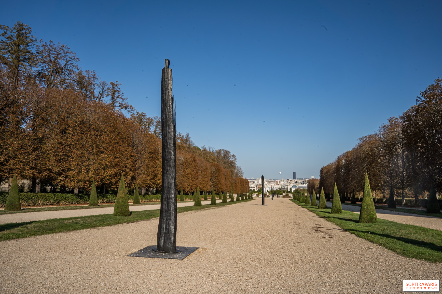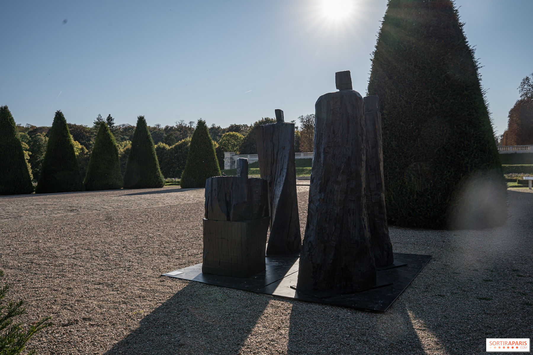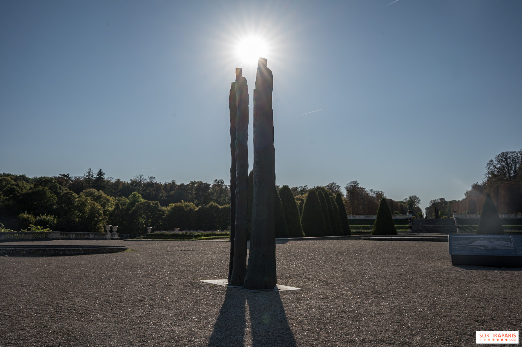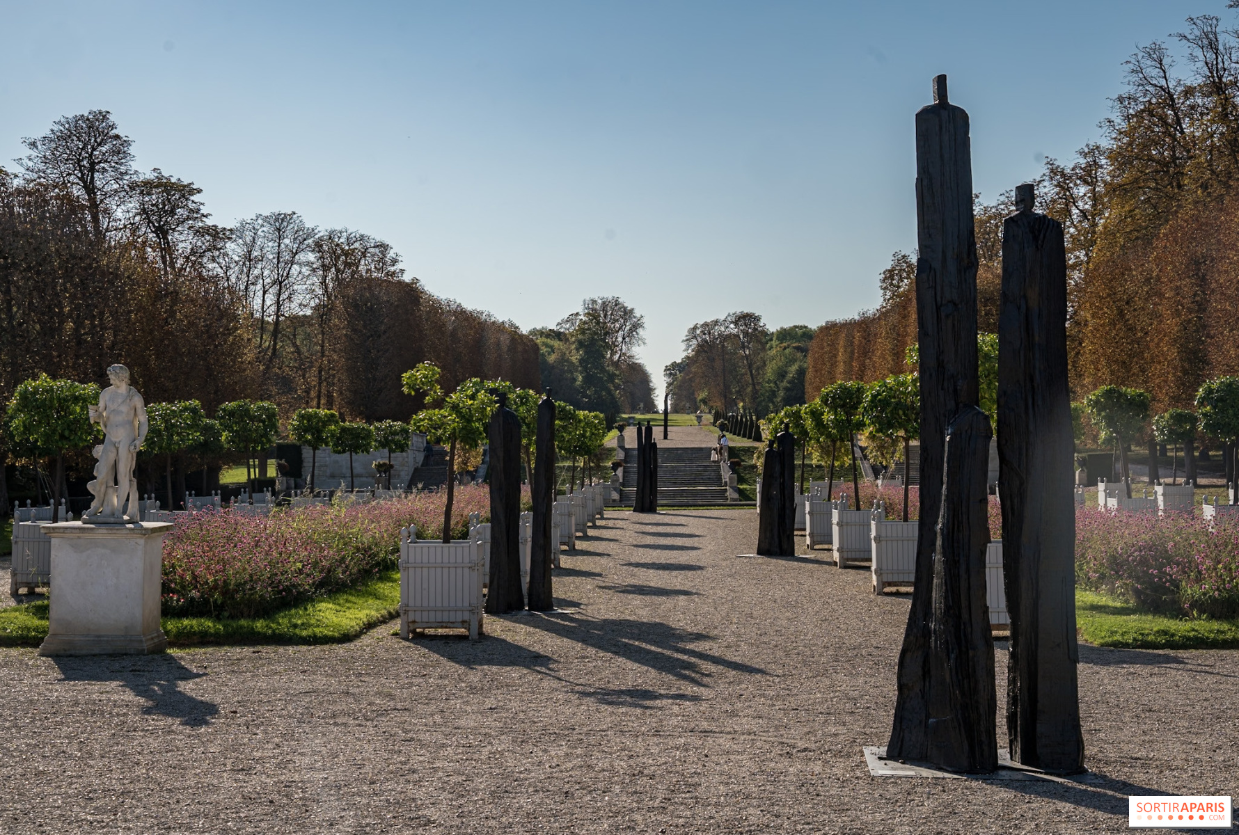 Les œuvres sont disséminées à travers les différents espaces du domaine, créant ainsi une dynamique particulière et permettant une expérience artistique en plein air. Ces quinze figures spectrales en bois de chêne brut et calciné s'intègrent parfaitement dans les perspectives dessinées par Le Nôtre au XVIIe siècle. Cette approche rejoint d'ailleurs la tendance des expositions en plein air qui se multiplient dans la région parisienne. L'artiste a conçu ces sculptures pour qu'elles s'inscrivent dans les grandes perspectives du paysage et prolongent les lignes du parc tout en les réinterprétant, apportant une résonance contemporaine à cet héritage historique.