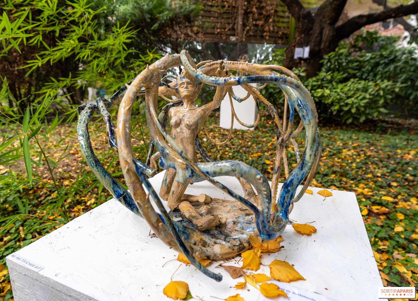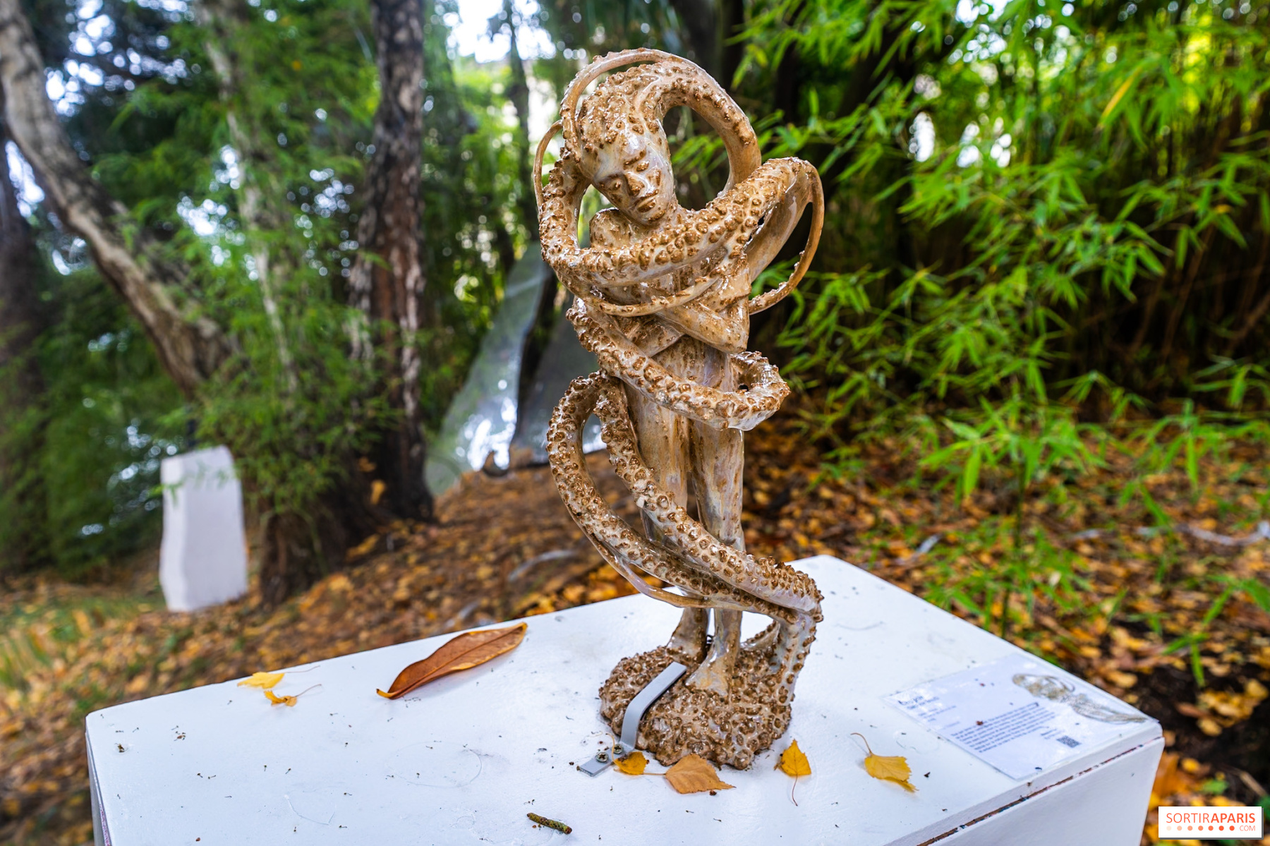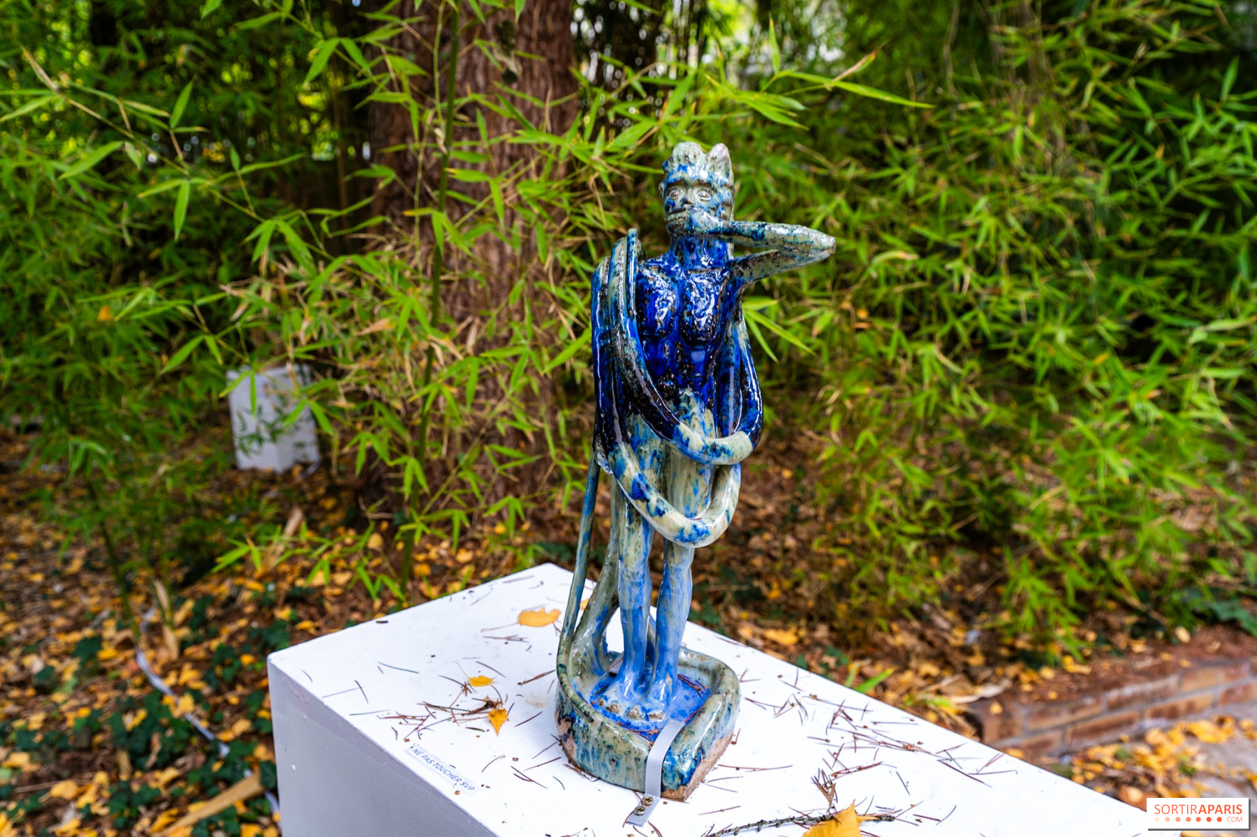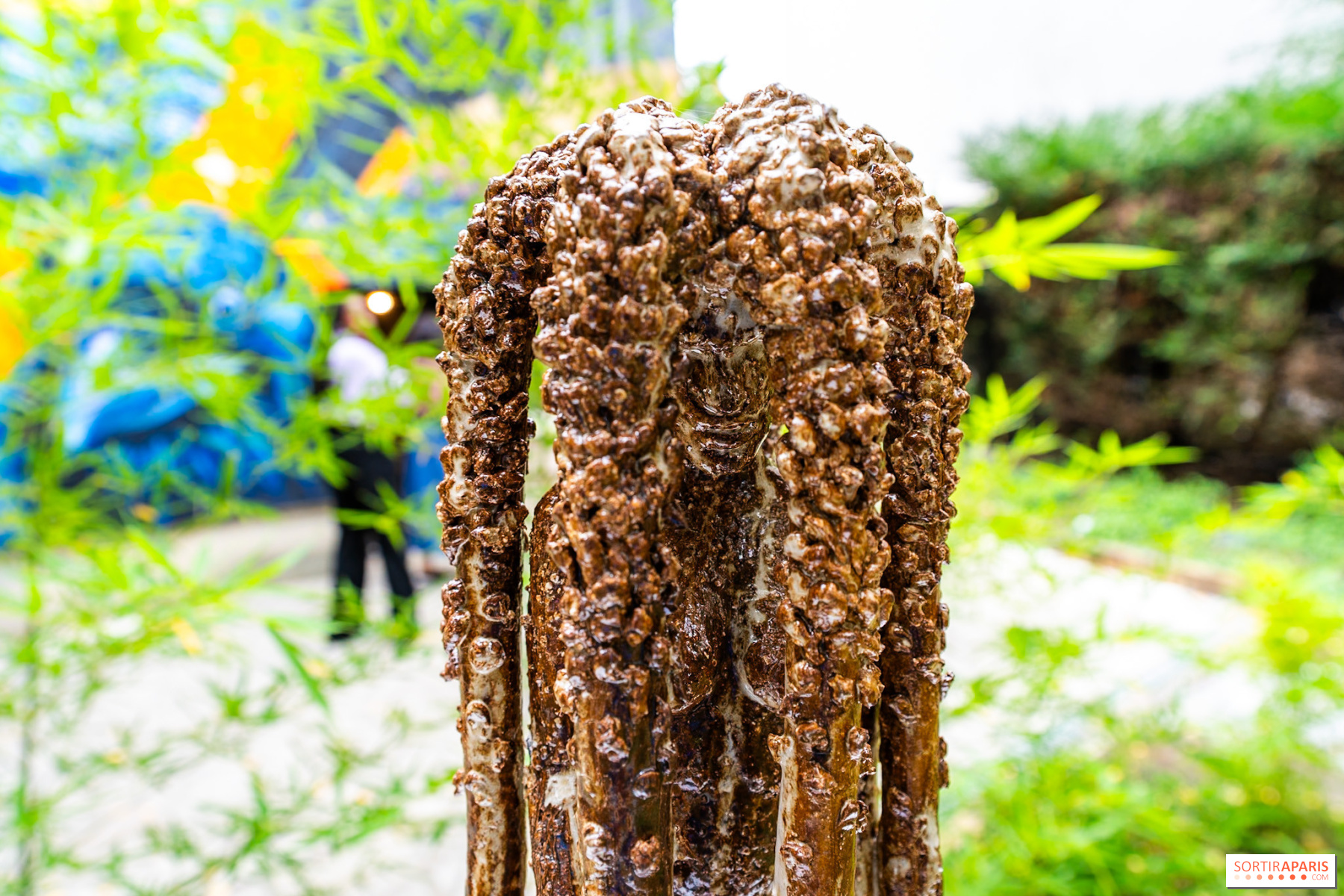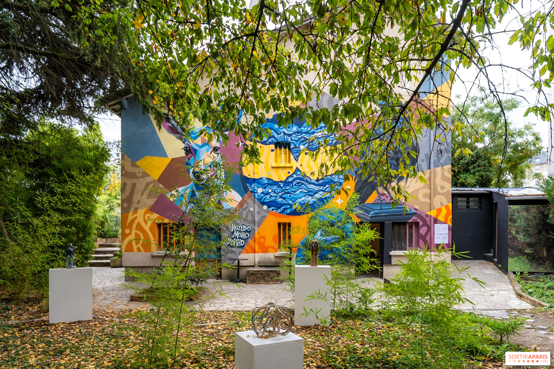L'installation investit également le jardin qui se pare de sculptures tentaculaires de Garance Baud, installés devant toute une façade qui déploie une fresque mystique de Kundo.