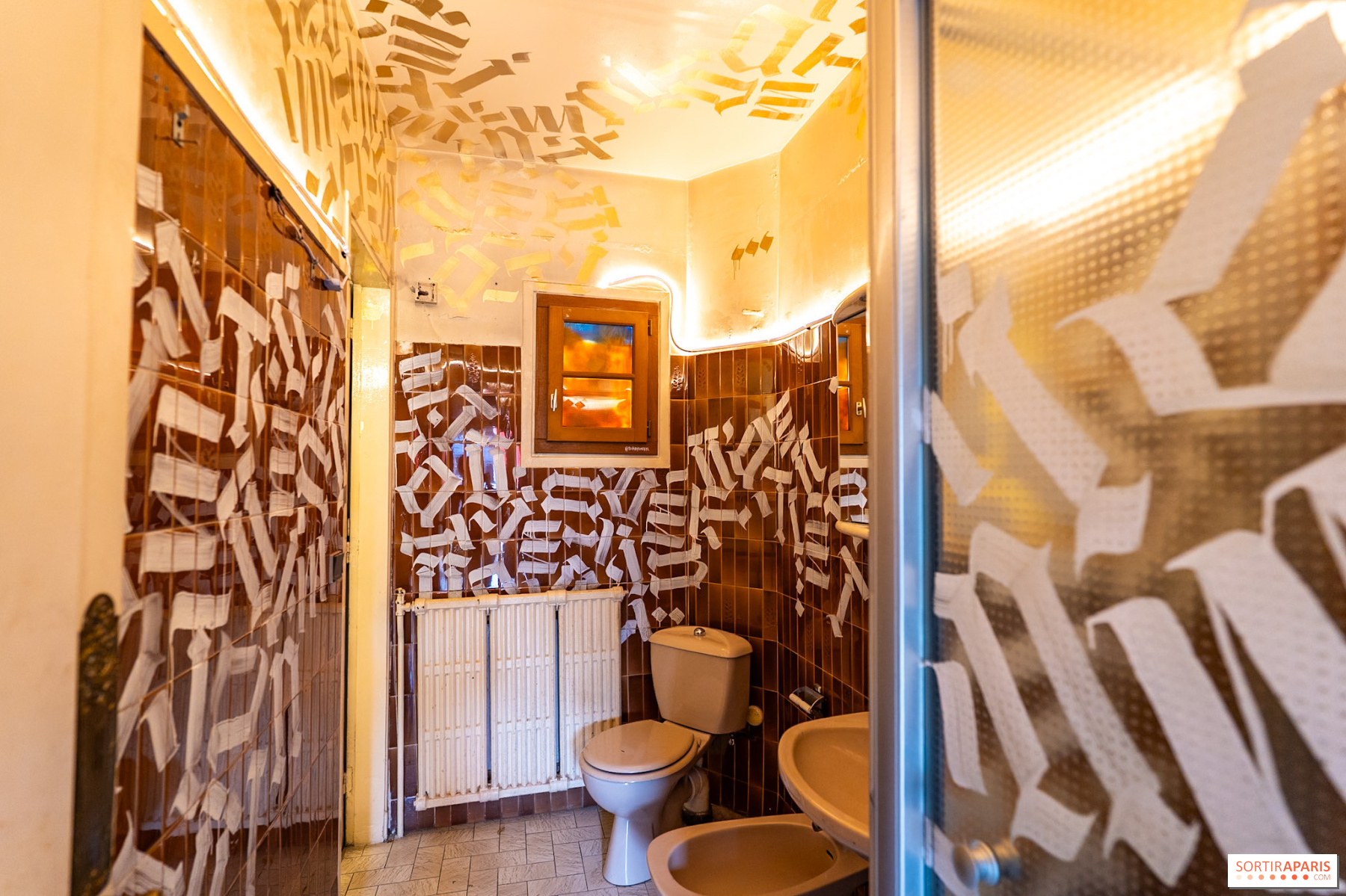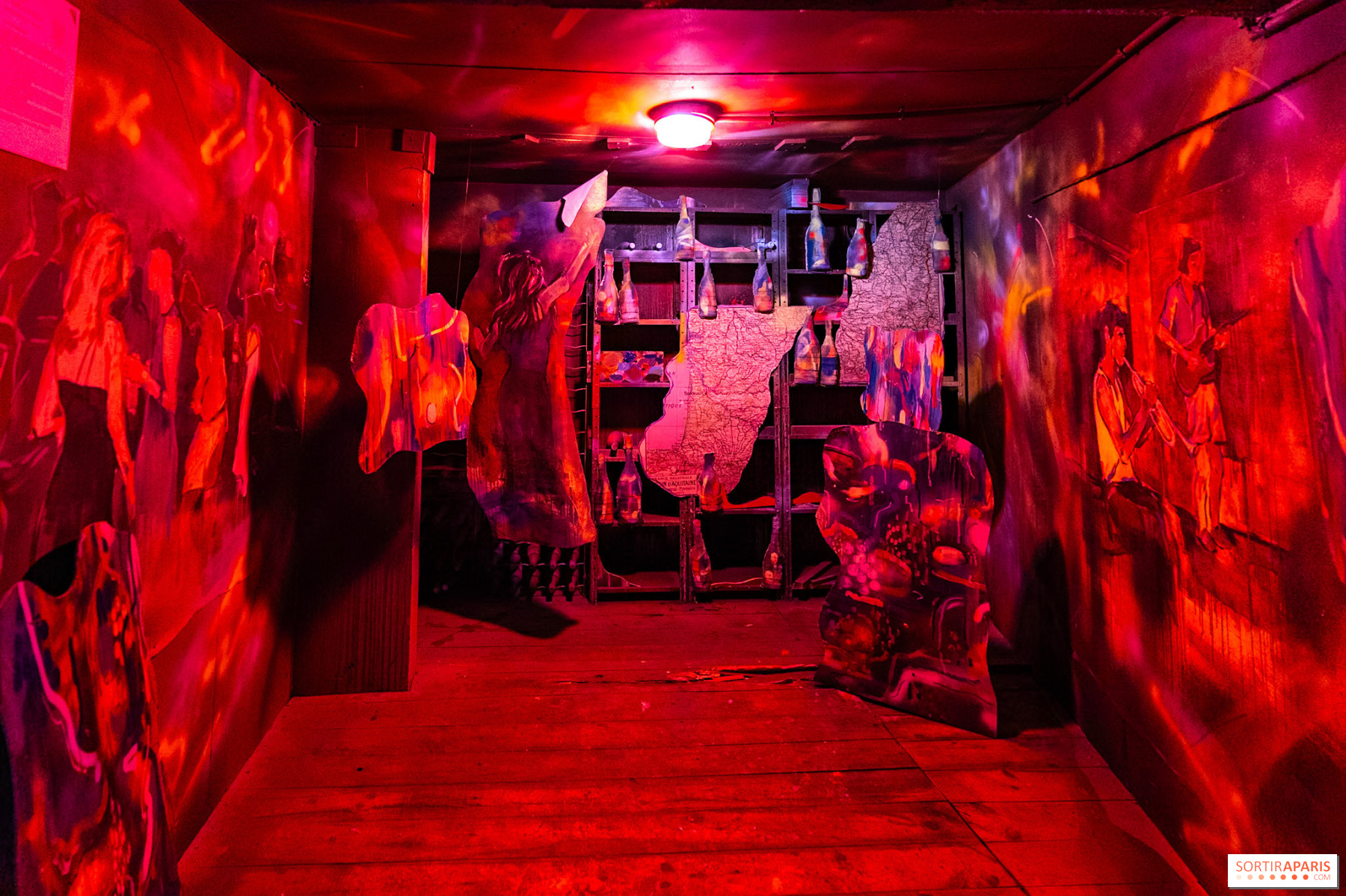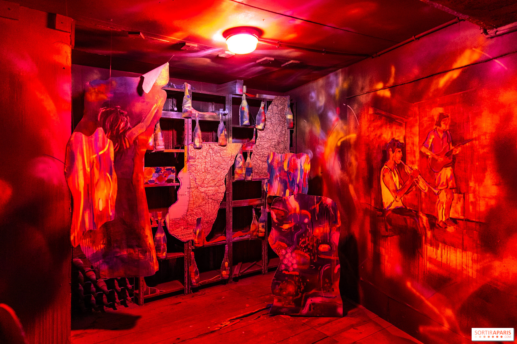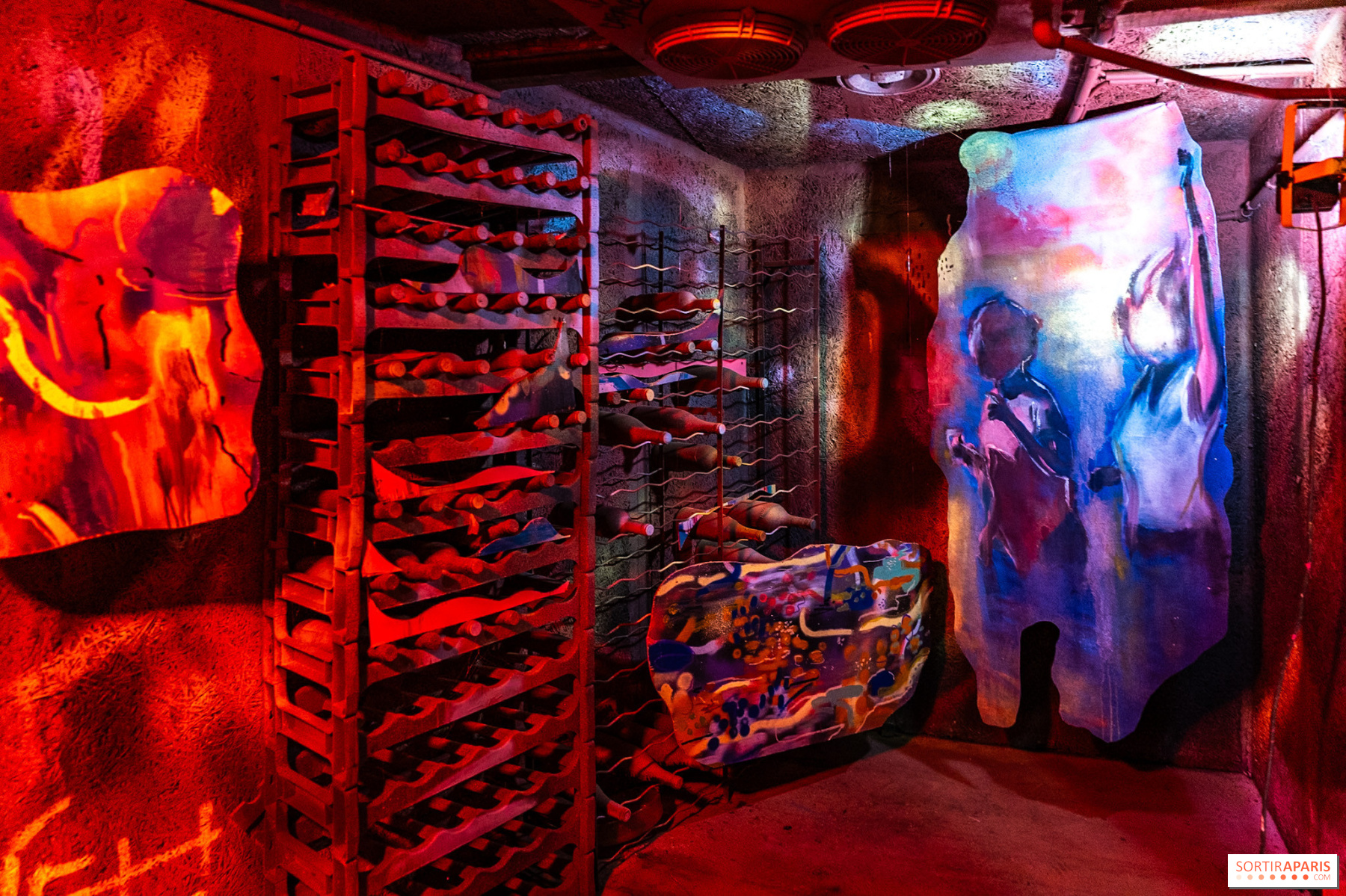 Dès le rez-de-chaussée, on commence fort. La visite démarre dans une ancienne salle cachée derrière une porte blindée qui protégeait autrefois une cave à vin. Le lieu a inspiré une installation qui joue justement sur ce côté secret, presque clandestin. Et ce n'est pas tout : il y a même une pièce secrète dissimulée derrière une bibliothèque coulissante. On ne va pas tout vous dévoiler, mais cette touche d'aventure ajoute vraiment du piquant à l'exploration artistique. Attention quand même : certaines pièces sont exiguës et incongrues, alors on fait gaffe à sa tête en passant d'une salle à l'autre.