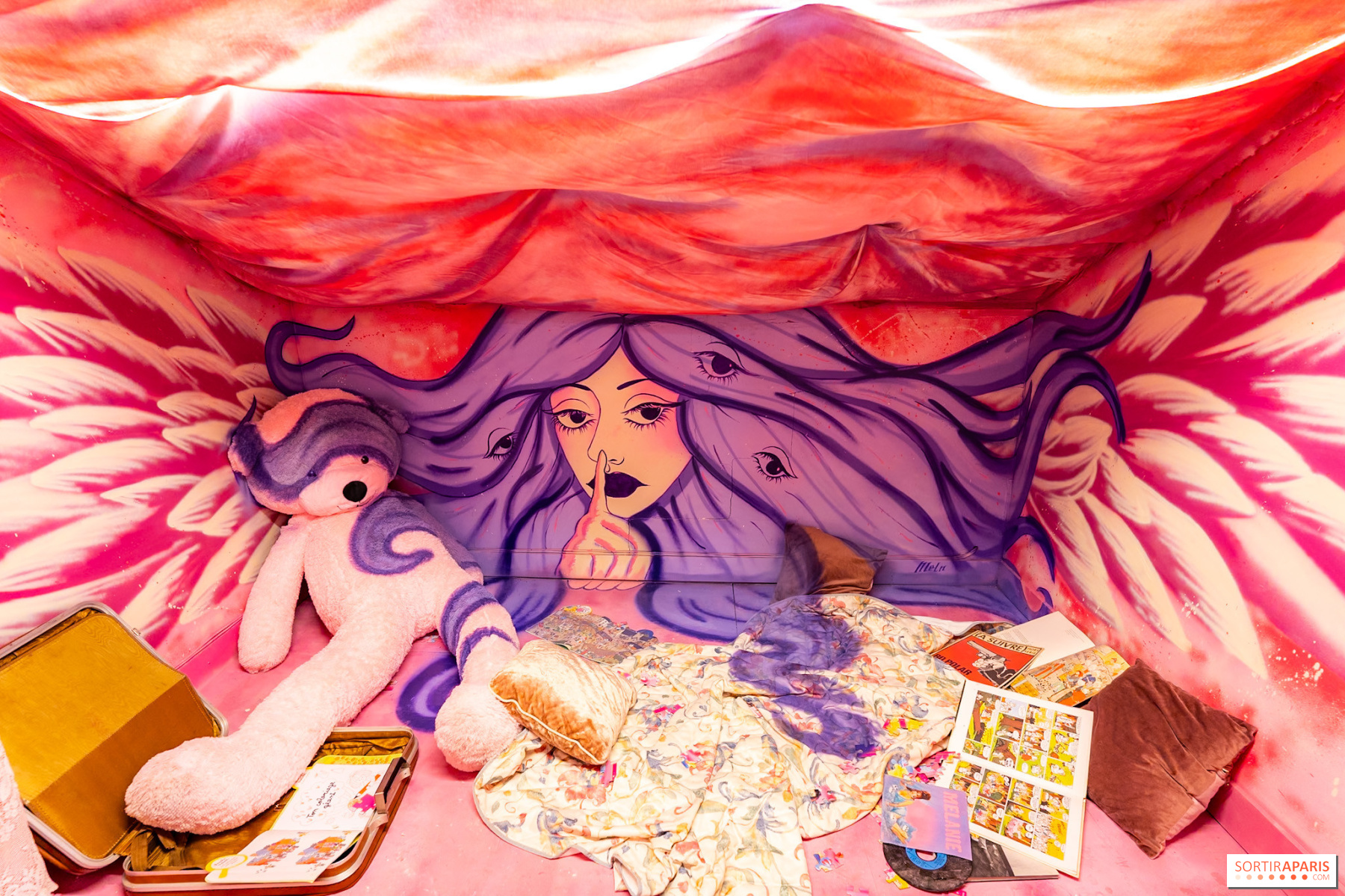 C'est donc 14 artistes qui sont venu métamorphoser cet espace conservé dans son jus, avec ses moquettes d'époque, ses lustres vintage et son mobilier authentique. On file y explorer chaque recoin retravaillé autour du thème de "La Mémoire", en petit comité de dix personnes maximum, pour une immersion totale dans l'univers de chaque créateur.