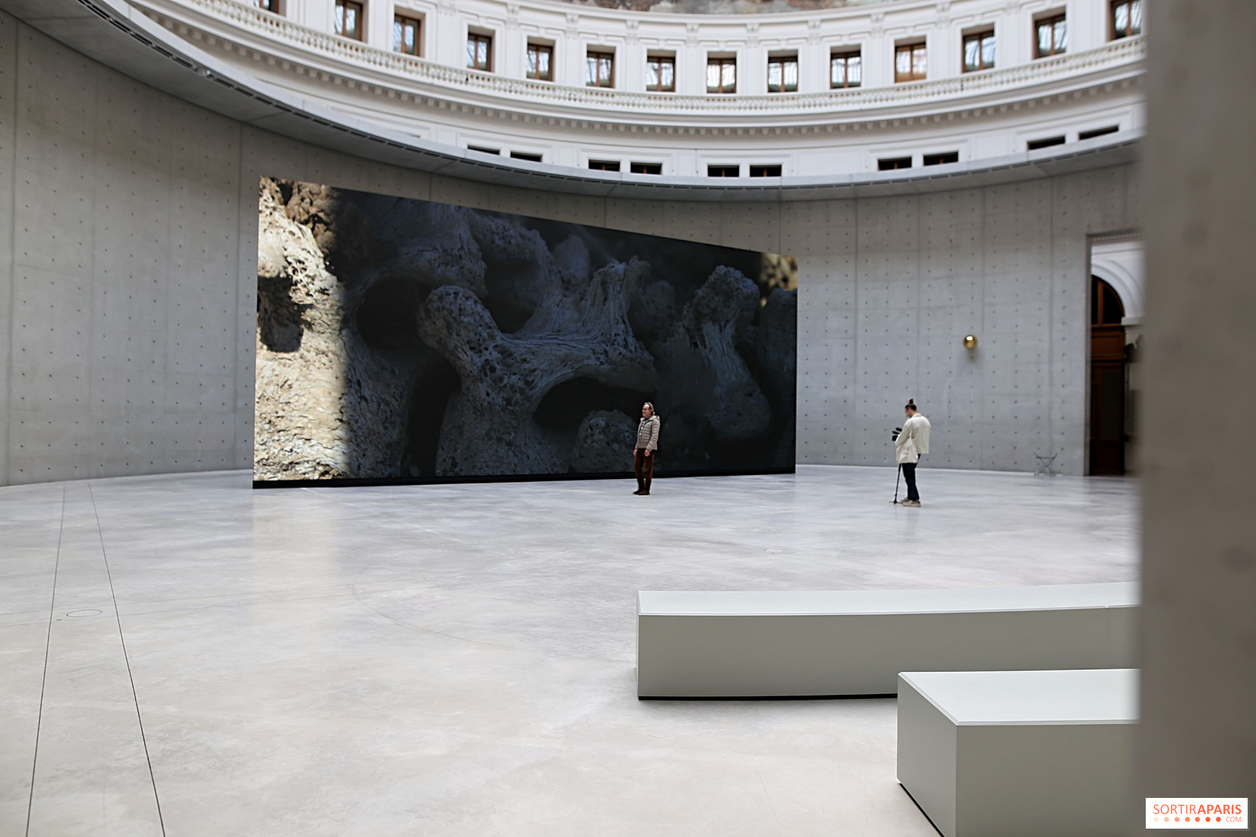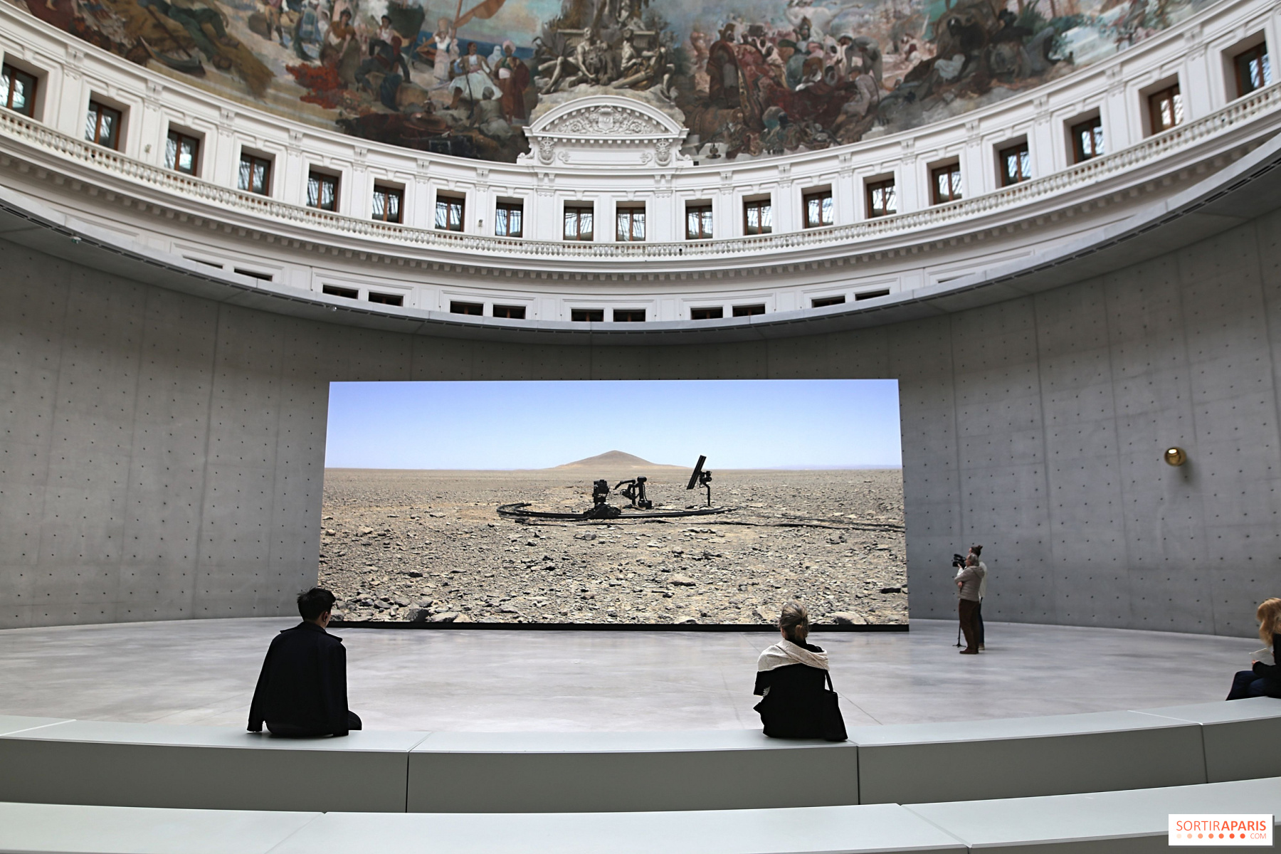 Une fois encore, les œuvres investissent les différents endroits du monument parisien : du sous-sol aux galeries situées à l'étage en passant par les vitrines sans oublier la Rotonde. Celle-ci est d'ailleurs investie pour l'occasion par l'artiste contemporain français Pierre Huyghe. Cette fois-ci, pas d'installation monumentale à admirer sous la nef. On se souvient encore de "Kandor" de Mike Kelley ou encore "To Breathe – Constellation" de Kimsooja dans le cadre de l'exposition "Le monde comme il va". Pour "Clair-obscur", Pierre Huyghe présente son film "Camata" (2024), réalisé dans le désert d'Atacama au Chili. Sur un écran géant, on y découvre des bras mécaniques activés par l'énergie de panneaux solaires qui s'animent autour d'un squelette. Pour mieux apprécier le montage du film - sans cesse refait en direct par un algorithme d'apprentissage automatique -, les visiteurs sont d'ailleurs invités à s'asseoir face à l'écran géant érigé au sein de la sublime Rotonde.