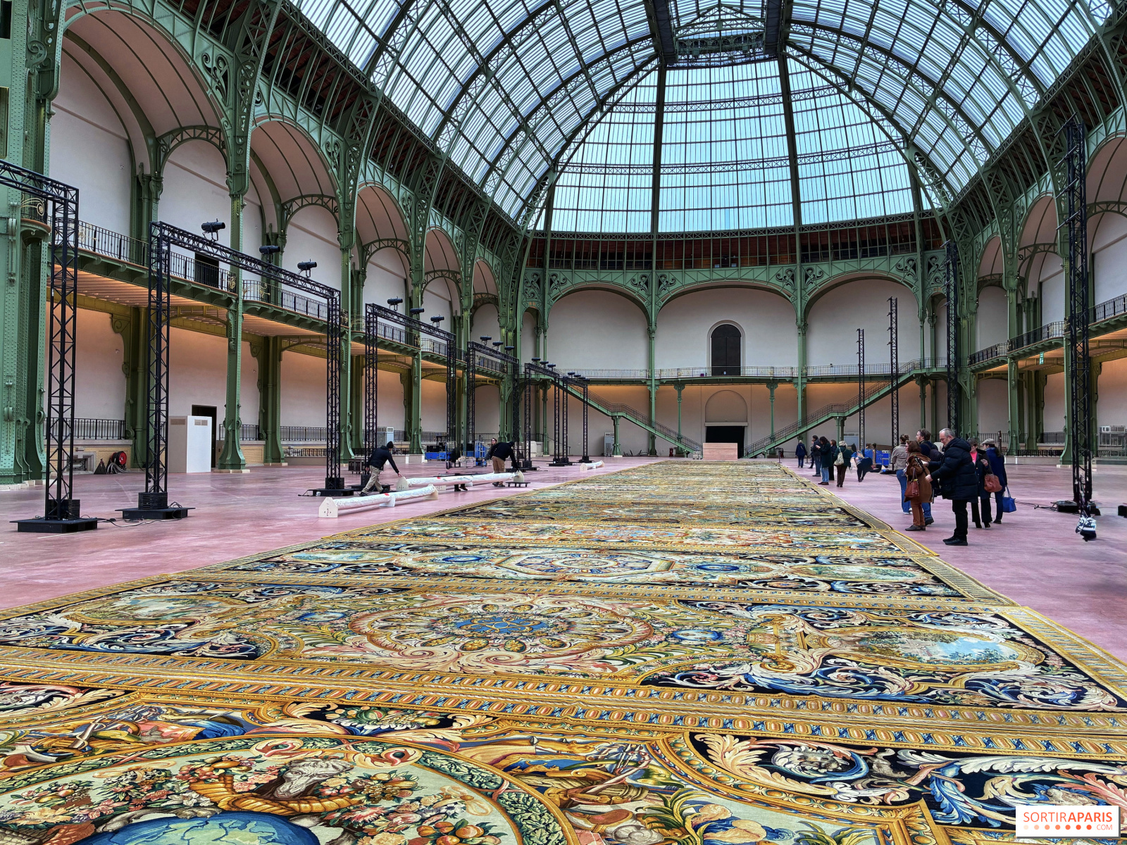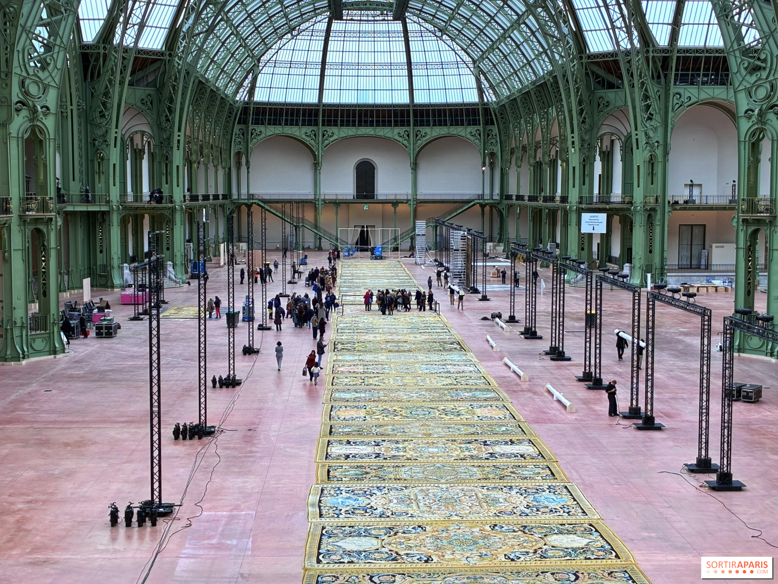 Loin de nos habitudes, la scénographie montre cet ensemble de tapis comme ils auraient dû être présentés dans le Louvre et seul le Grand Palais était assez grand pour les accueillir !
