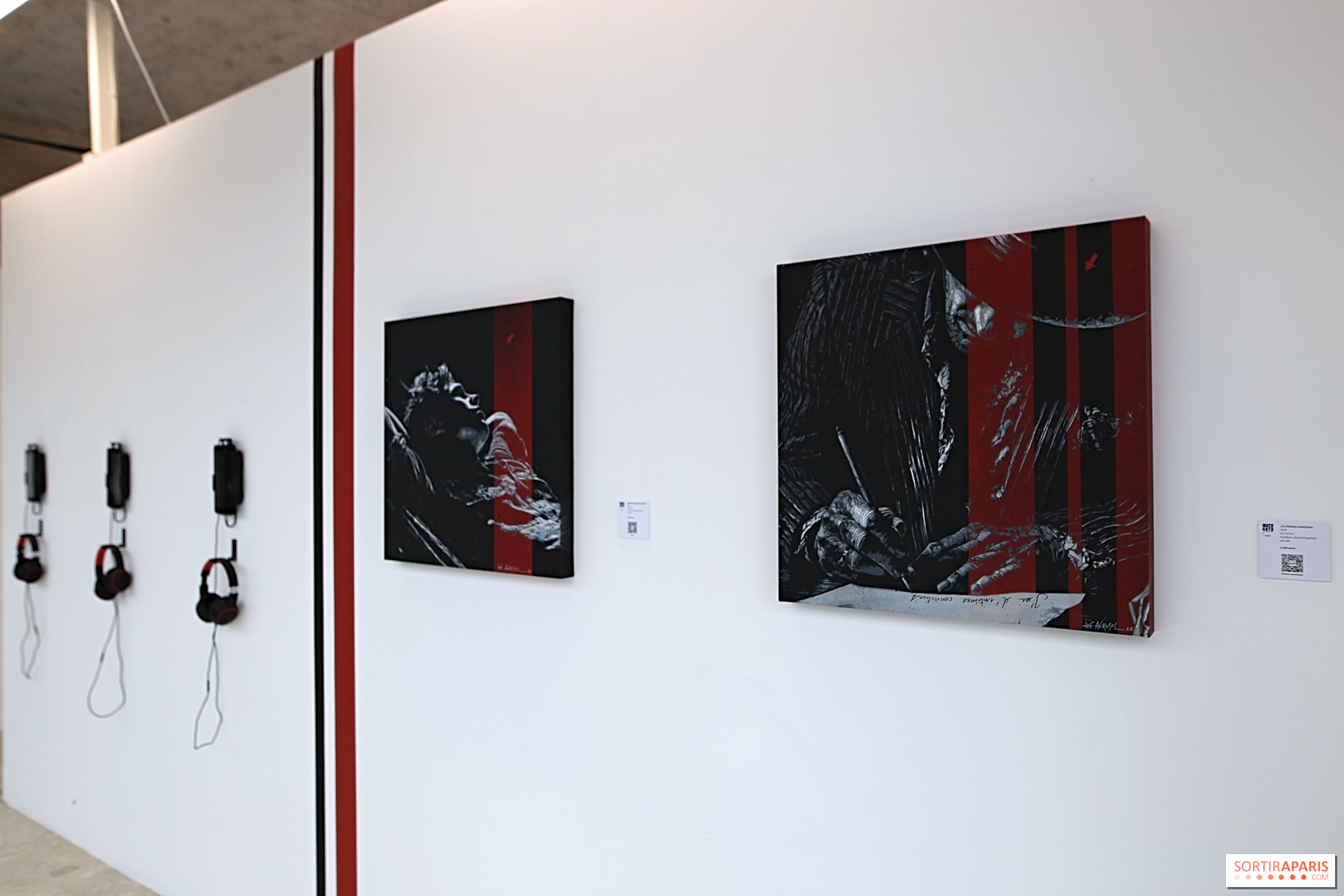 L'originalité de ce projet bicéphale réside également dans la visite. Ainsi, des QR codes associés à chaque toile permettent d’écouter les chansons de l'opus. Afin de vivre pleinement cette immersion, il est d'ailleurs recommandé aux visiteurs de venir avec son smartphone et son casque ou ses écouteurs. Pour les autres, trois stations d'écoute sont mises à la disposition des visiteurs. On vous conseille également de prendre un instant pour vous poser dans la salle dédiée projetant des reportages et documentaires sur l'artiste.