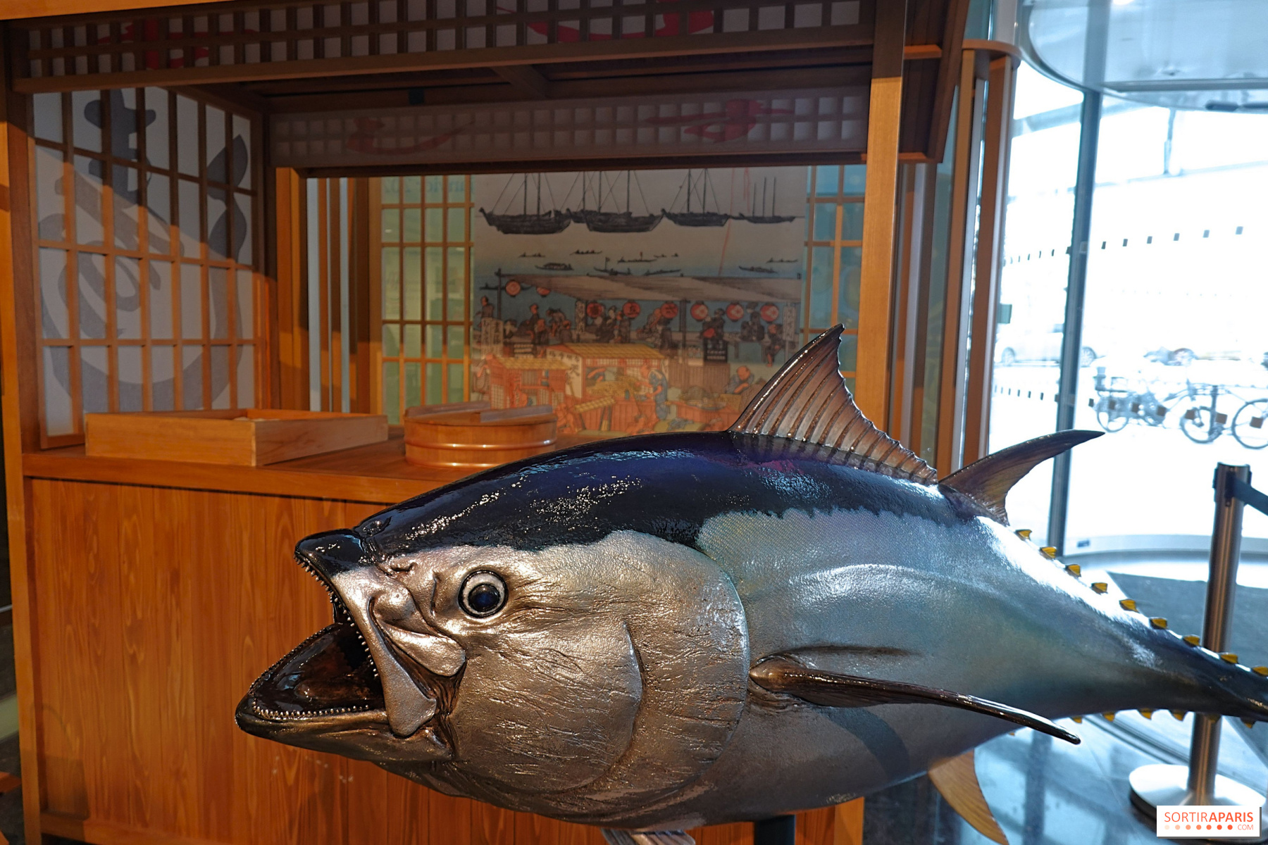 L'exposition dévoile également des répliques grandeur nature de poissons, dont l'incontournable thon. Imposant par sa taille et pouvant atteindre des prix records lors de ventes aux enchères au marché de Tokyo, le thon est largement plébiscité par les Japonais pour leurs sushis, contrairement au saumon préféré dans le reste du monde. Plusieurs estampes illustrant l'évolution culinaire et sociale du sushi ainsi que trois vidéos sont également à découvrir sur place.