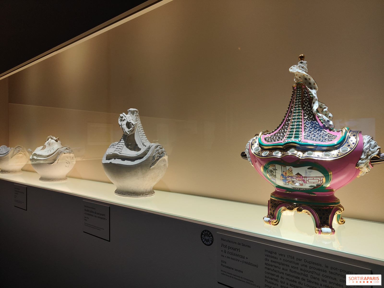 Mais la porcelaine reste au cœur du parcours : une salle nous permet notamment de découvrir le processus de création des pièces, avec les moulages des formes, le catalogue des dessins... Plusieurs peintres et créateurs de Sèvres sont mis en avant. Lisez bien les textes de salle pour comprendre tous les détails de ces histoires parfois complexes.
