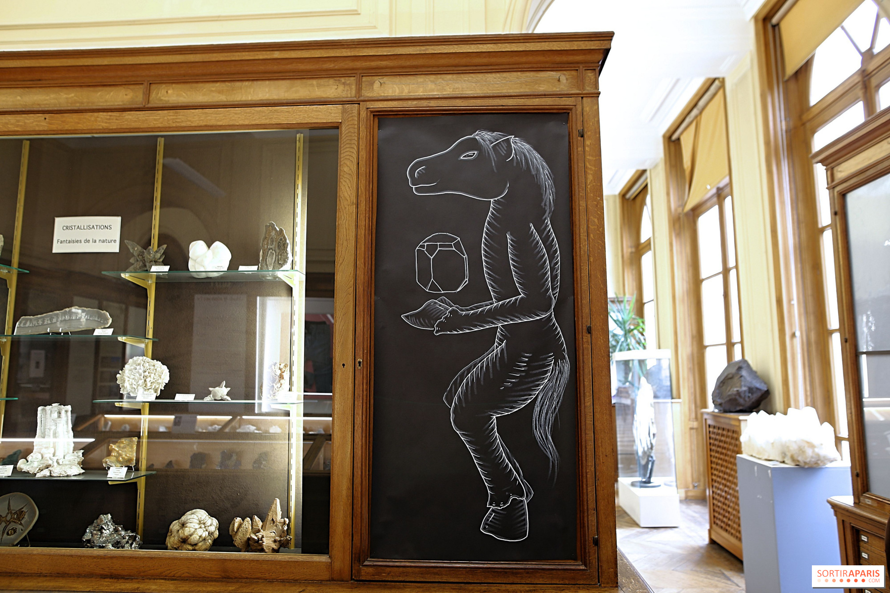 On adore également les chimères aquatiques qui évoluent dans ce qui s'apparente à de petits aquariums ou encore la vingtaine de créatures fantastiques dessinées sur des panneaux au marqueur sur fond noir. Celles-ci dévoilent ainsi les différentes structures cristallines que le visiteur peut retrouver dans les vitrines. Coup de cœur aussi pour les deux créatures arborant le marteau, l'ancien symbole de l'école des Mines.