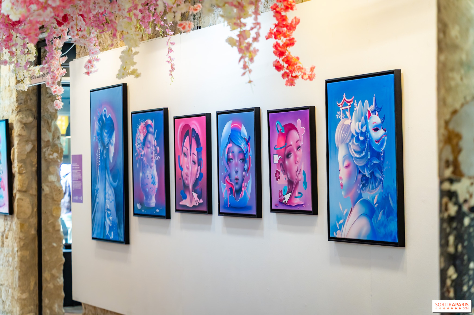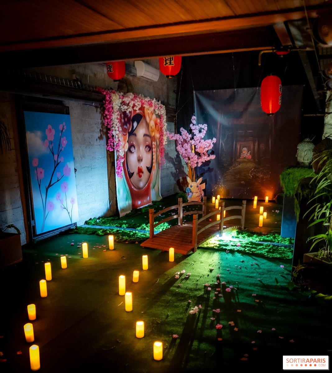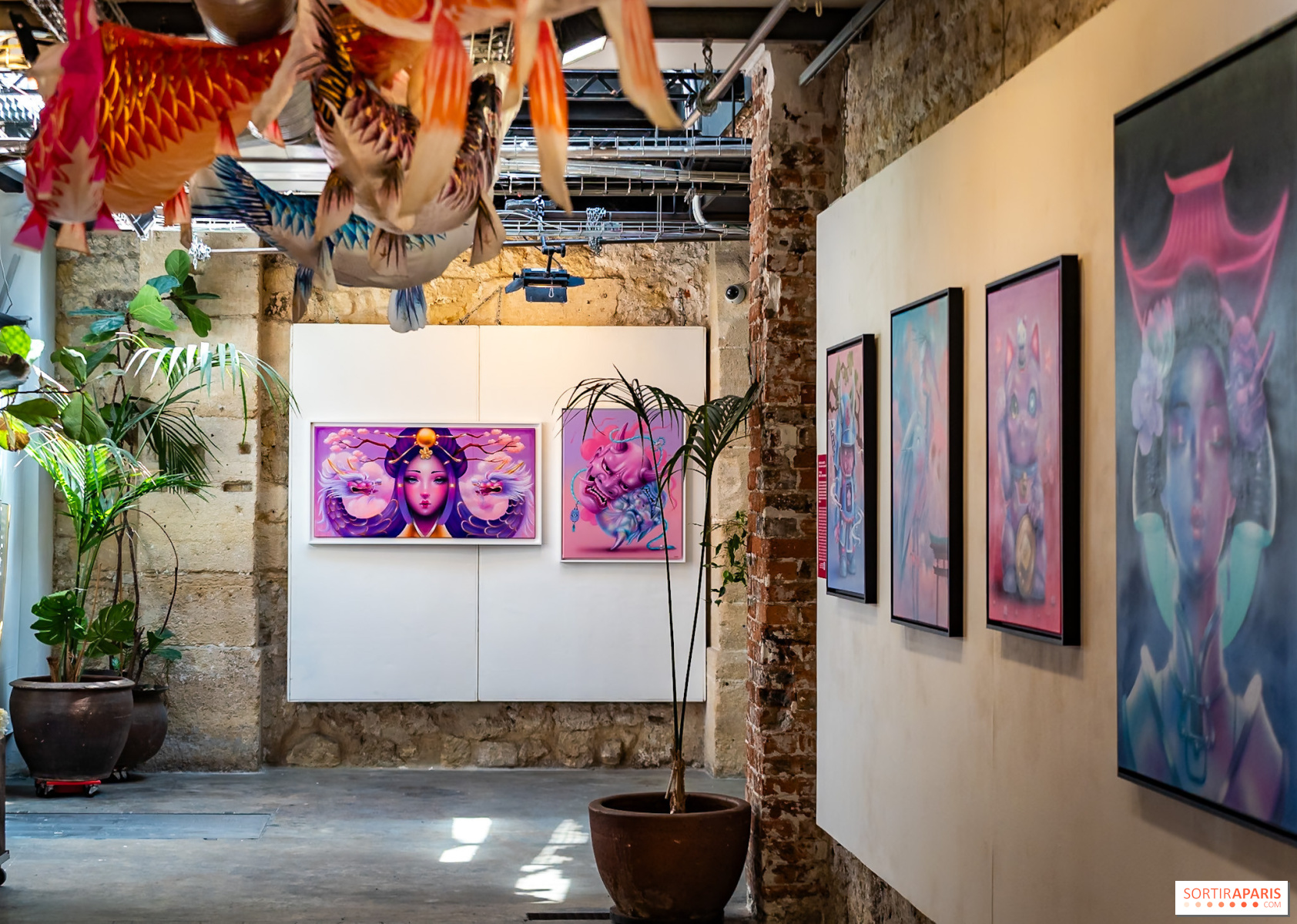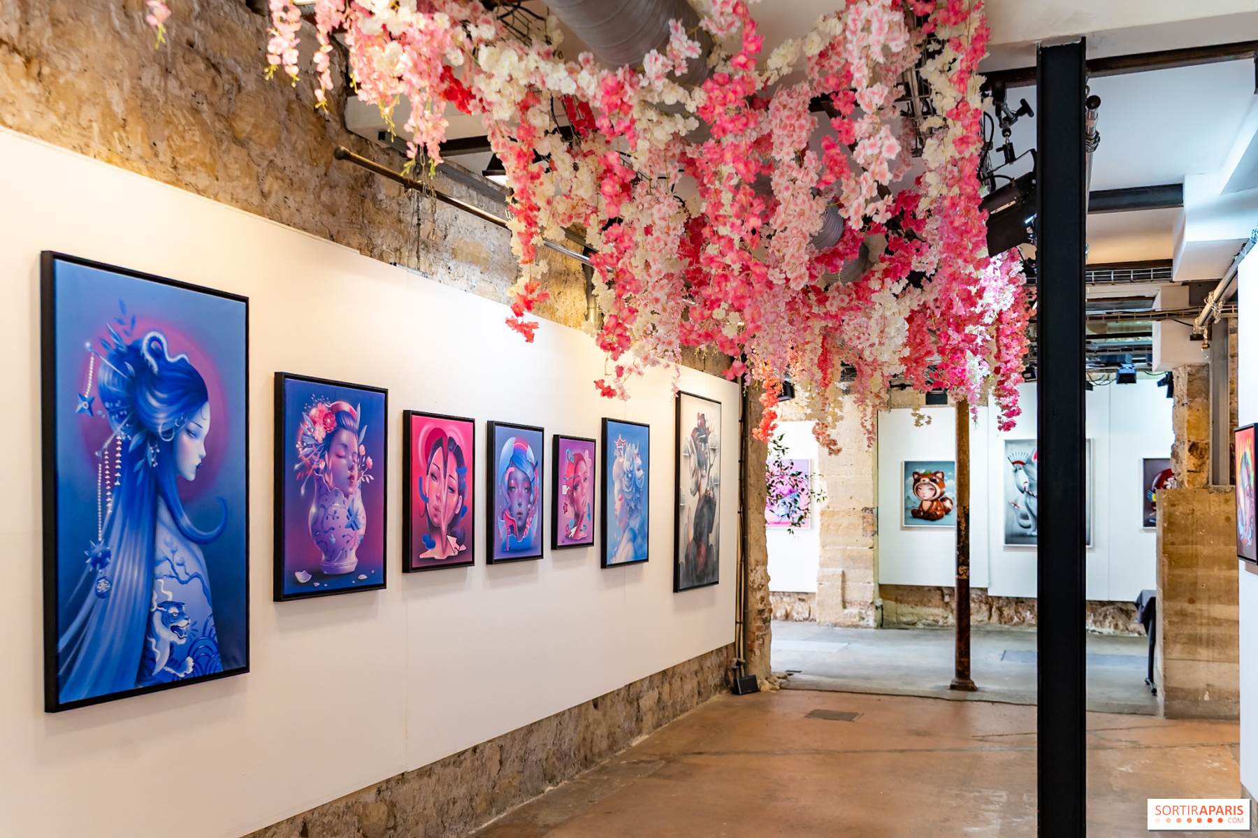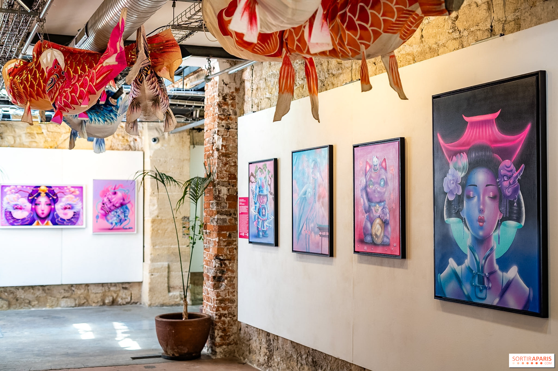 Le lieu en dit déjà beaucoup sur l'ambition du projet. Nichée au 12 Passage Choiseul, l'Espace Cinko est une ancienne imprimerie de 200 m² qui se transforme pour l'occasion en un Japon reconstitué, avec fleurs de sakura, lanternes et boutique japonaise. Ce passage couvert du 2e, à deux pas de la rue Sainte-Anne surnommée Little Tokyo pour sa concentration de restaurants japonais devient le décor idéal pour une scénographie immersive pensée par la galerie en symbiose totale avec l'œuvre de l'artiste.