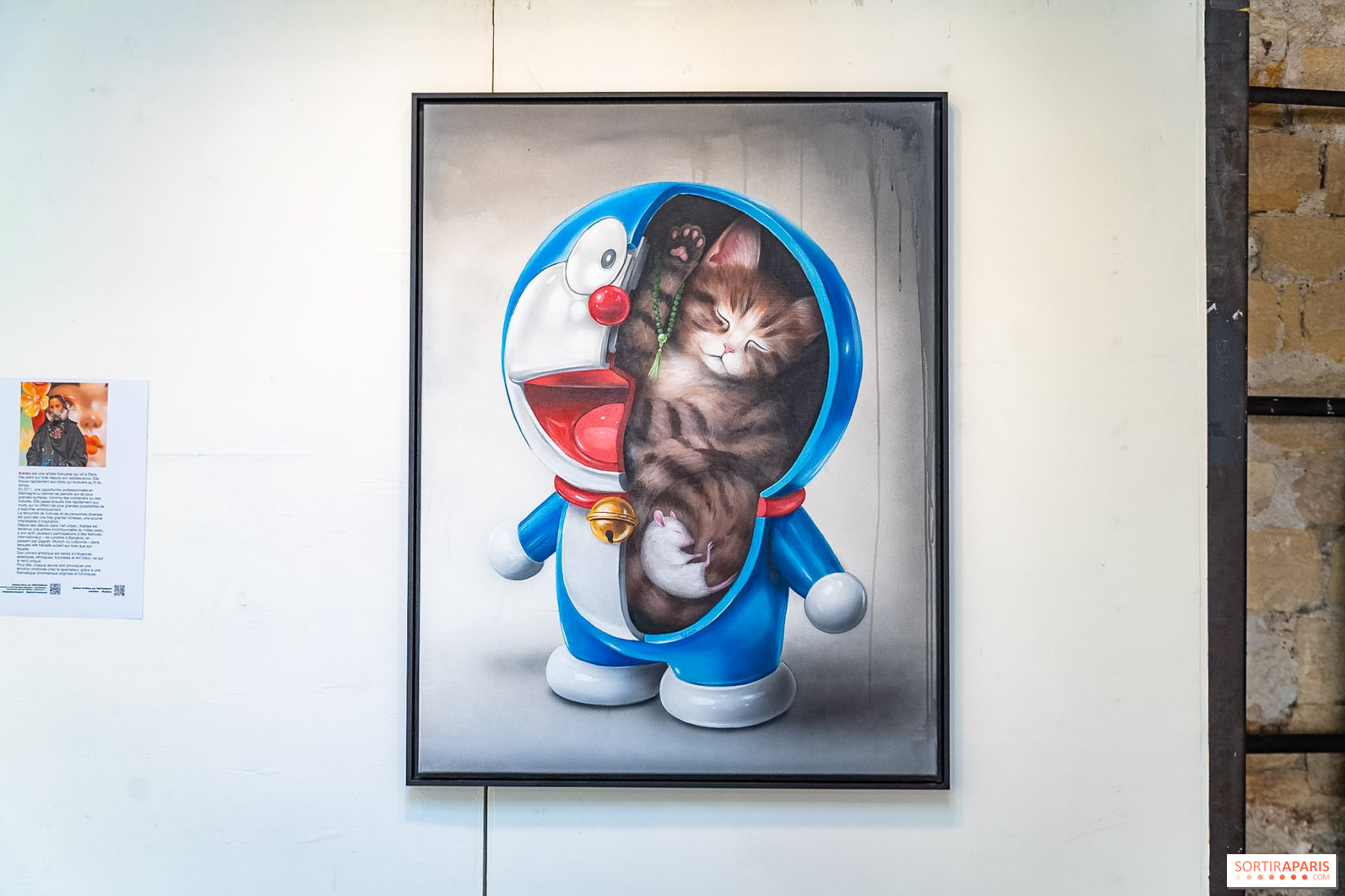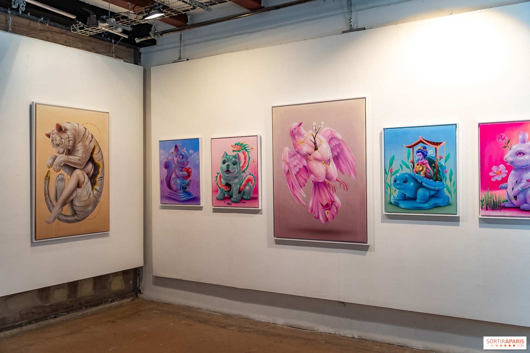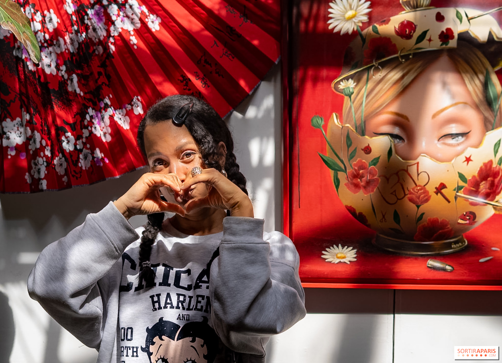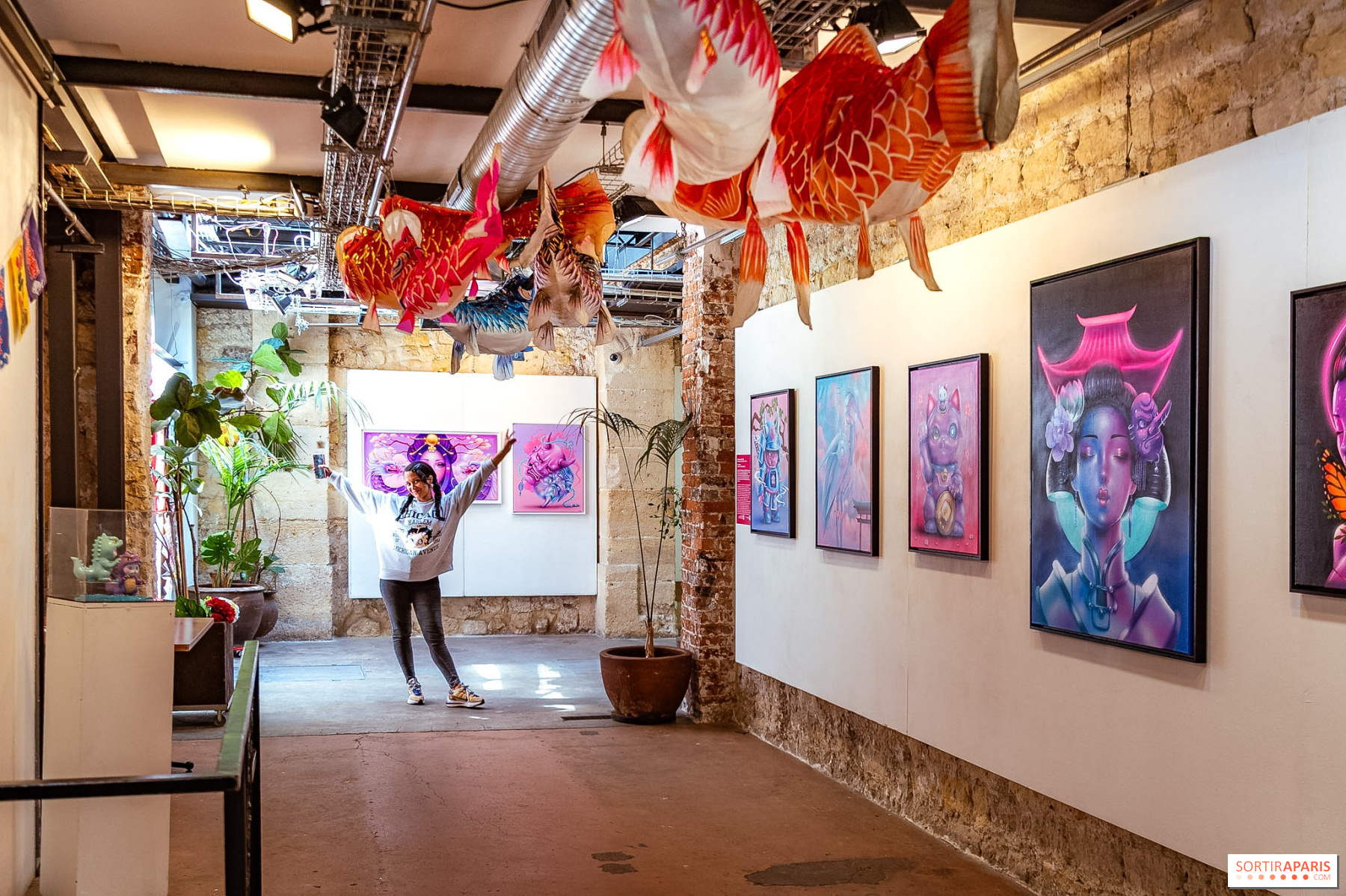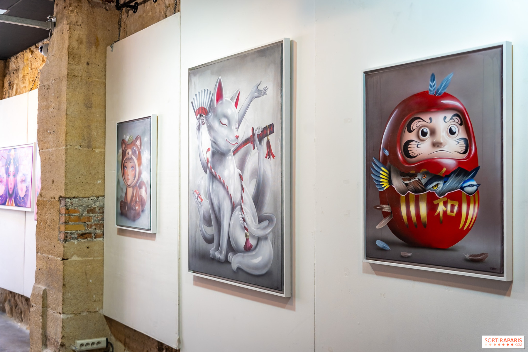 Le lieu en dit déjà beaucoup sur l'ambition du projet. Nichée au 12 Passage Choiseul, l'Espace Cinko est une ancienne imprimerie de 200 m² qui se transforme pour l'occasion en un Japon reconstitué, avec fleurs de sakura, lanternes et boutique japonaise. Ce passage couvert du 2e, à deux pas de la rue Sainte-Anne surnommée Little Tokyo pour sa concentration de restaurants japonais devient le décor idéal pour une scénographie immersive pensée par la galerie en symbiose totale avec l'œuvre de l'artiste.