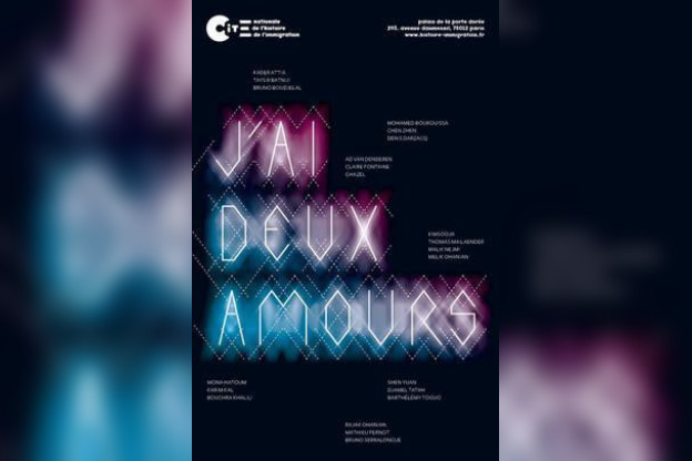 Hou Hanru, Evelyne Jouanno et Isabelle Renard, commissaires de l’exposition J’ai deux amours, ont sélectionné 106 œuvres parmi le fonds d’art contemporain du Musée national de l’histoire de l’immigration et imaginé un parcours en cinq thèmes : Départ – voyages – circulations / Entre rêve et nécessité / Frontières : passages et contrôles / Vivre ensemble / Réinventer son univers.