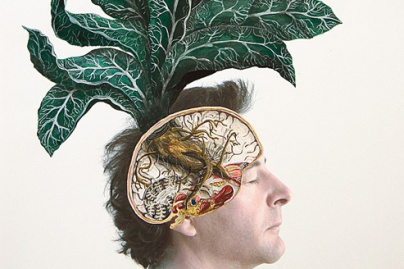 L’Herbier, série d’impressions numériques retouchées à la peinture, se compose d’étranges planches graphiques où, dans une esthétique inspirée des traités anciens d’anatomie et de botanique, l’artiste greffe des organes végétaux sur l’image photographique écorchée de son propre corps.