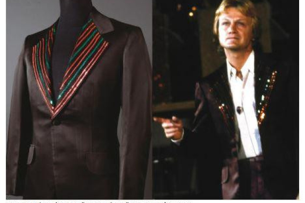 Autre tenue, toujours signée par Camp de Luca : un costume noir aux revers garnis de paillettes, porté lors de deux émissions télévisées en 1977 lors de l’interprétation de la chanson Je vais à Rio (5 000 / 7 000 €).