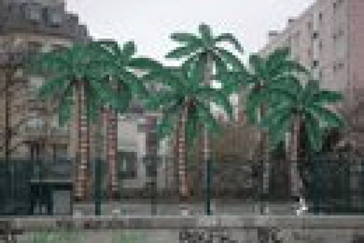 Bertrand Lavier a imaginé une œuvre qui serait un mirage. Un ensemble de palmiers venus de nulle part fait irruption, hors d'atteinte, dans la perspective de la rue des Peupliers. Les motifs, découpés dans des plaques de métal recouvertes de résine peinte, sont en fait actionnés par un mécanisme de théâtre et émergent par intermittence.