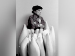 Louise Bourgeois en 1990 avec sa sculpture en marbre Eye to Eye (1970). © ADAGP, Paris, 2008.