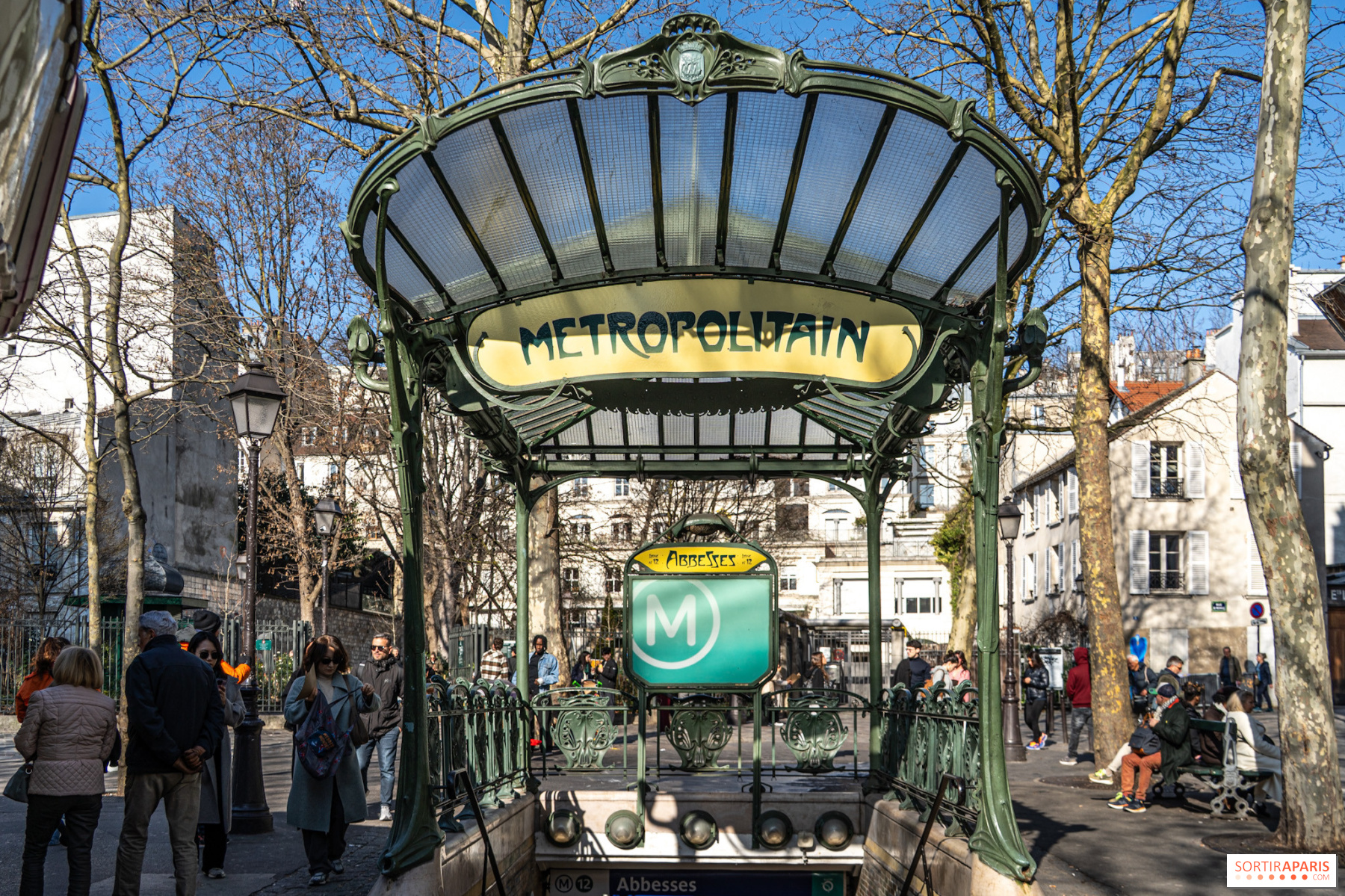 La station de métro Abbesses, située sur la ligne 12, dessert la place des Abbesses et le quartier de Montmartre. Son nom provient de l'abbaye des Dames de Montmartre, fondée en 1130 par le roi Louis VI et la reine Adélaïde de Savoie. Cette abbaye, dirigée par des abbesses, a joué un rôle majeur dans l'histoire religieuse et culturelle du quartier pendant plus de six siècles.
