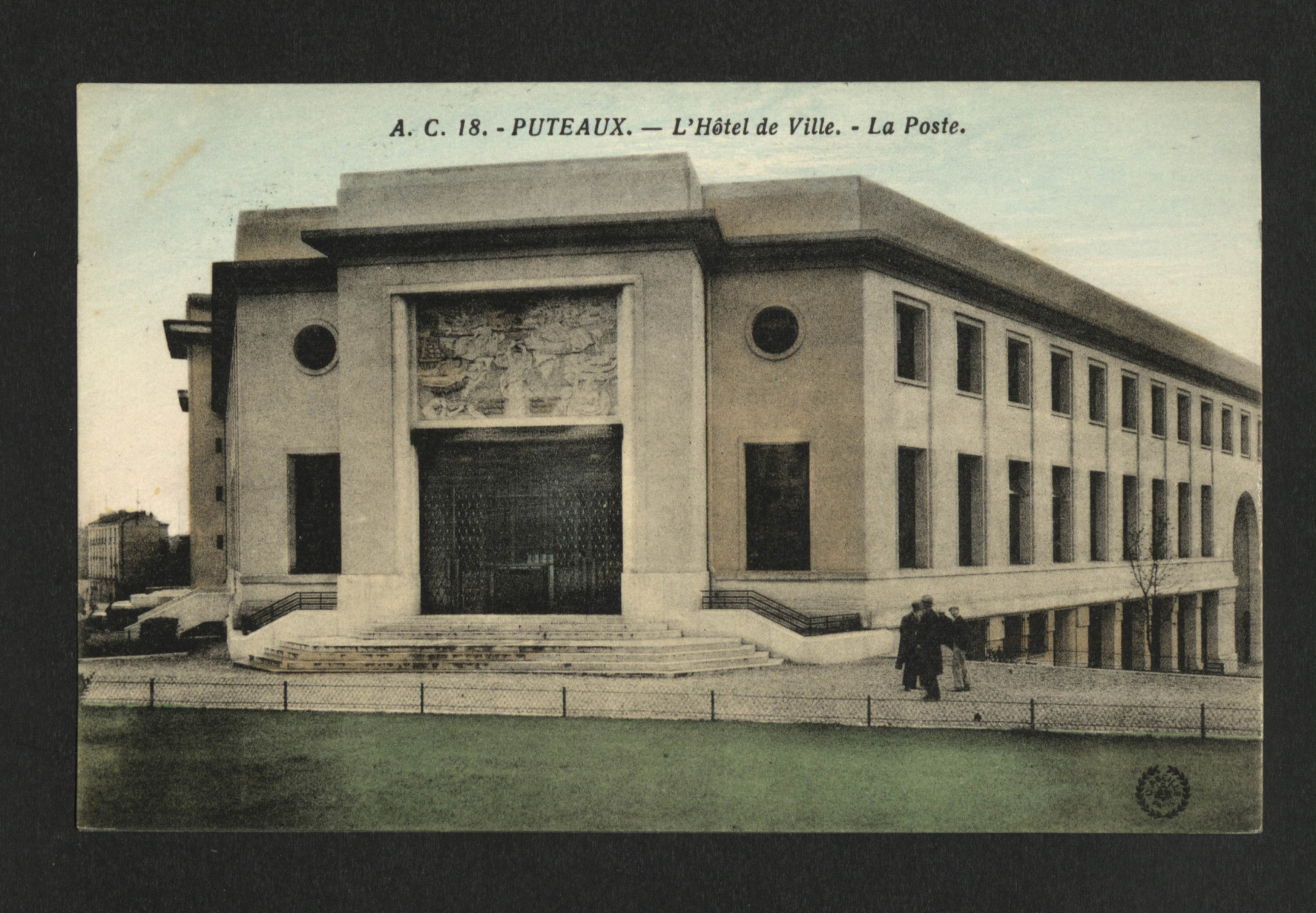 Construite entre 1930 et 1934 par les architectes Édouard et Jean Niermans, la mairie de Puteaux arrive pile à l’heure dans la période Art Déco. À l’époque, le béton et les lignes géométriques sont à la mode, et on cherche à donner un peu de relief aux bâtiments publics. Pari tenu : le bâtiment décroche même un prix d’architecture en 1937. De l’extérieur, la façade symétrique et les bas-reliefs donnent tout de suite le ton. C’est droit, net, ordonné. On est loin des extravagances de l’Art Nouveau ou des grands effets du baroque. Ici, le décor reste sobre mais soigné.