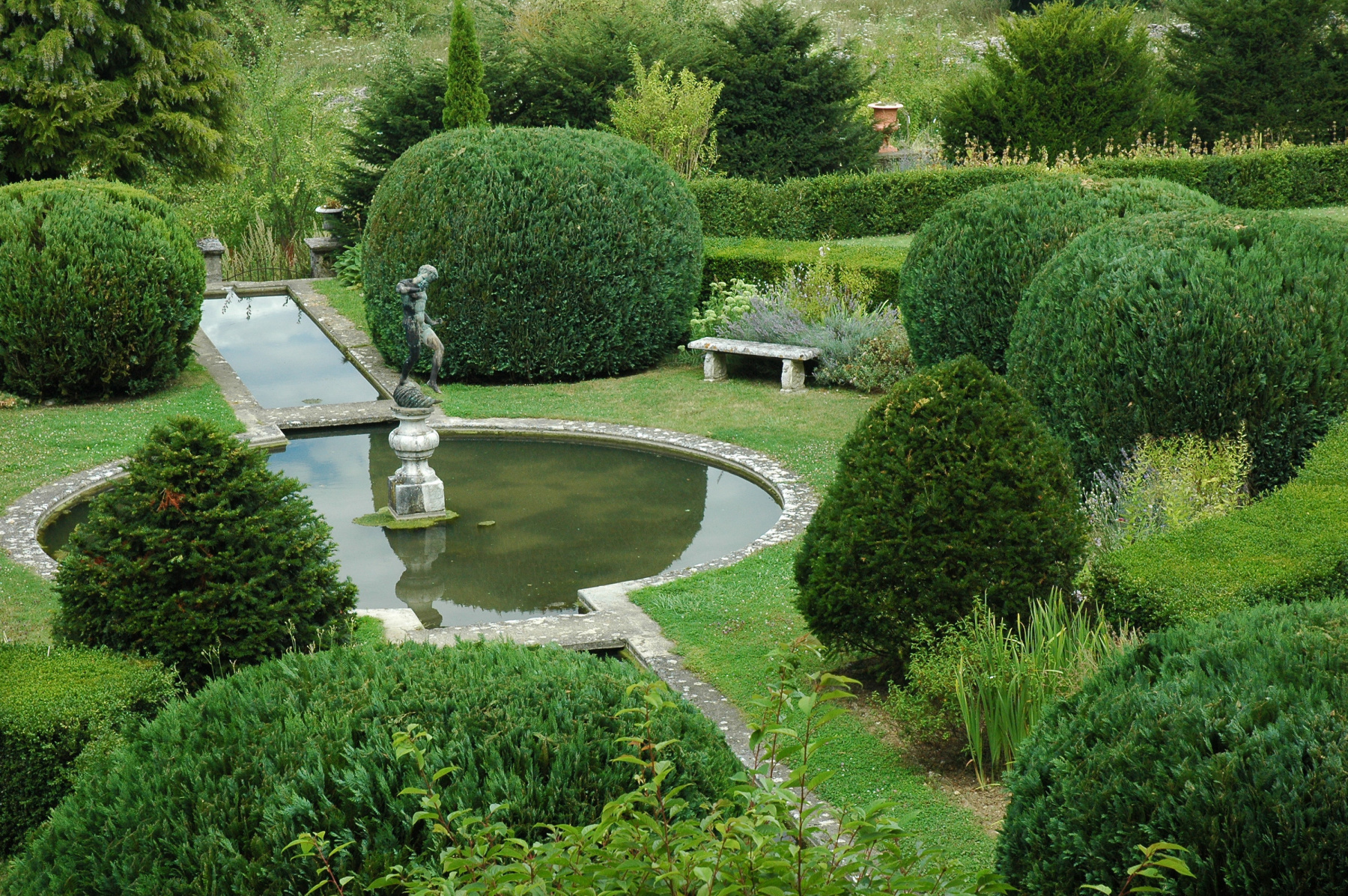 Le jardin à la française, lui, se développe plus tard, notamment sous l’influence de Le Nôtre au 17e siècle : il privilégie la symétrie stricte, l’axe central monumental, les parterres brodés et une vision très ordonnée de la nature, souvent à plat et organisée autour d’un château.