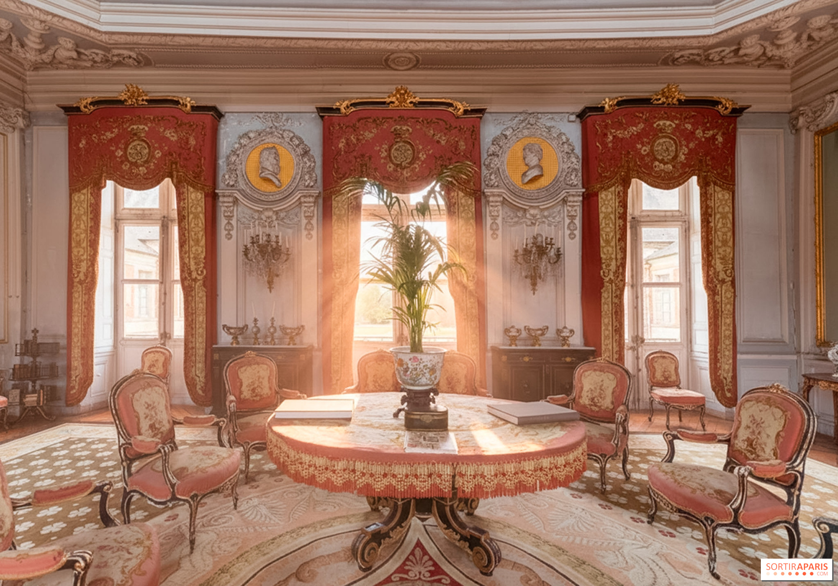 Dans le spectaculaire grand salon à l'italienne, long de 17 mètres sur deux étages, on lève les yeux vers l'exceptionnel plafond peint par Denuelle et on découvre un magnifique portrait en pied de l'Empereur en costume de sacre. Les visites partent à 14 h, 15 h, 16 h et 17 h, la session de 16 h étant réservée aux enfants. La visite château et parc est à 12 euros par adulte, 10 euros en tarif réduit (7-12 ans et seniors +65 ans), et gratuite pour les moins de 6 ans.