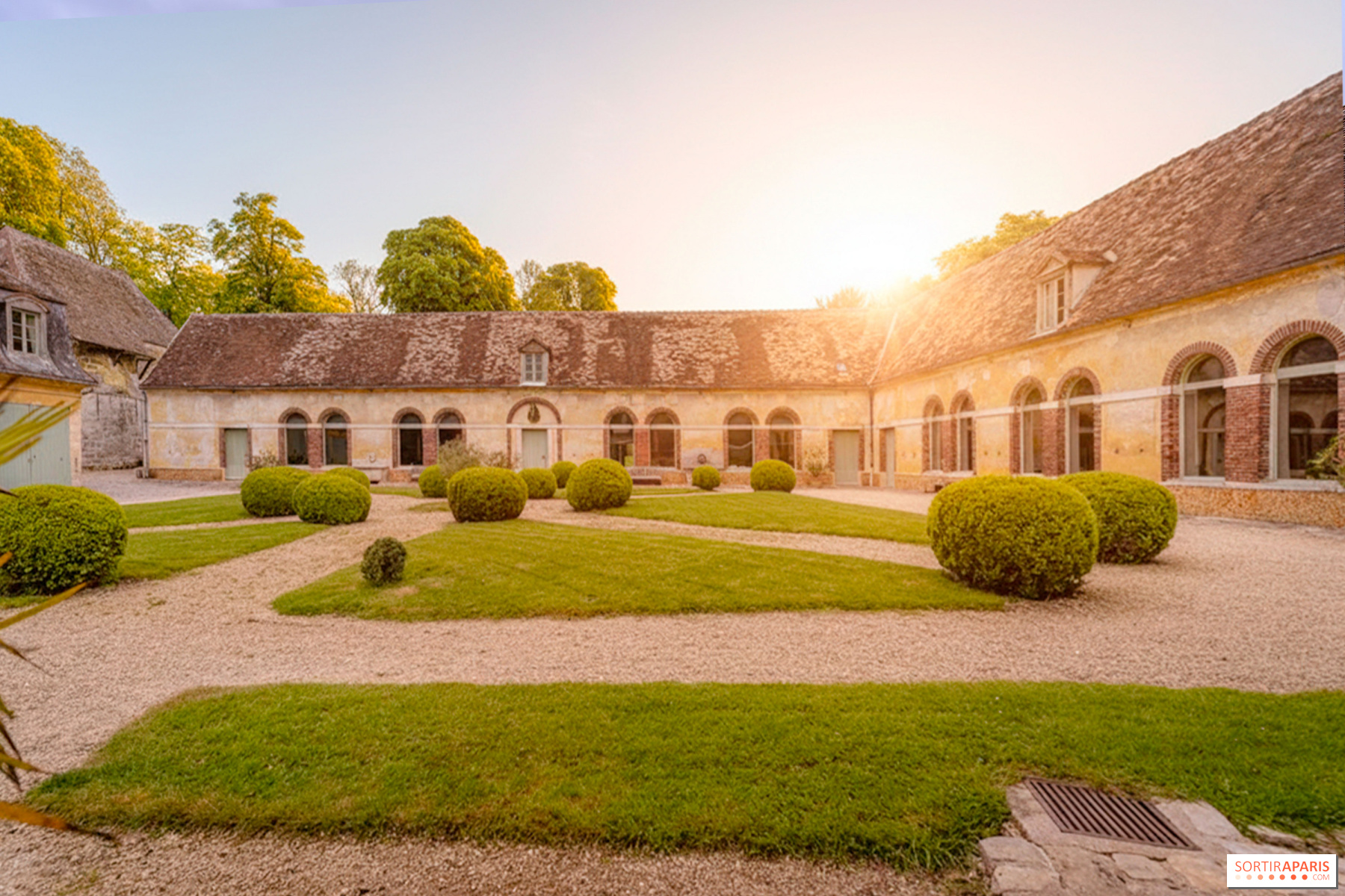 Non loin, les écuries du duc de Padoue racontent à leur façon l'histoire du château. Transformées en 1820 par l'architecte Damesme, qui secondait Berthault dans la grande campagne de restauration du domaine, elles arborent une façade à l'italienne ornée de baies géminées à entourage de briques, dont les rythmes évoquent ceux d'un cloître. Les murs ont été recouverts d'un enduit ocré, et l'ensemble des bâtiments unifié par un soubassement de meulières. À l'intérieur, l'esprit des écuries d'époque est resté intact : stalles et mangeoires, sol en briques et pavés d'origine sont toujours en place. Ces anciennes écuries ont depuis été aménagées en salles de réception modulables de 335 m², lumineuses et élégantes, qui accueillent aujourd'hui séminaires, réceptions et événements privés dans ce cadre patrimonial hors du commun.