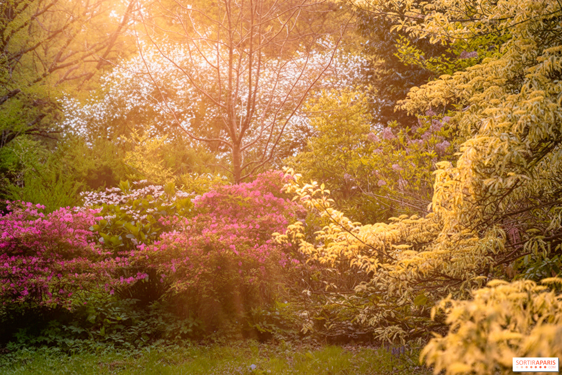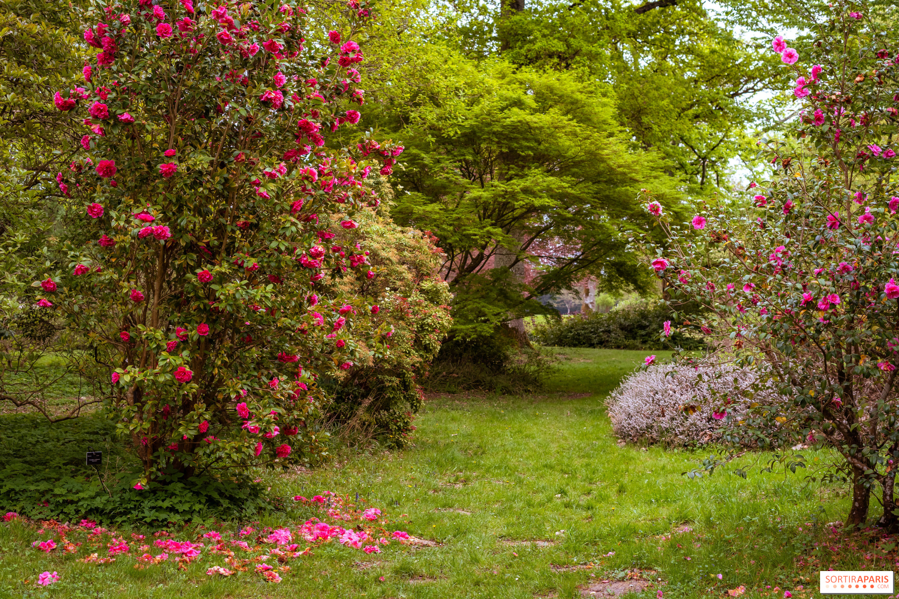 On aime cette adresse pour sa double lecture : les passionnés d'histoire y trouvent leur compte avec les visites guidées du château et ses anecdotes napoléoniennes, tandis que les familles profitent de parcours extérieurs bien pensés qui donnent du sens à la promenade. Ce qui est agréable quand on découvre le domaine, c'est que plusieurs espaces aux différentes ambiances se détachent. Du romantisme printanier des magnolias, glycines, lilas et cerisiers aux teintes rose pâle aux couleurs chatoyantes des azalées, des camélias et des rhododendrons qui commencent à peine à éclore lors de notre passage, on se laisse séduire. Les floraisons évoluent au fil des saisons et à l'arrivée de l'automne, les amoureux de la nature se délecteront des érables qui prennent leurs teintes jaunes et orangées.