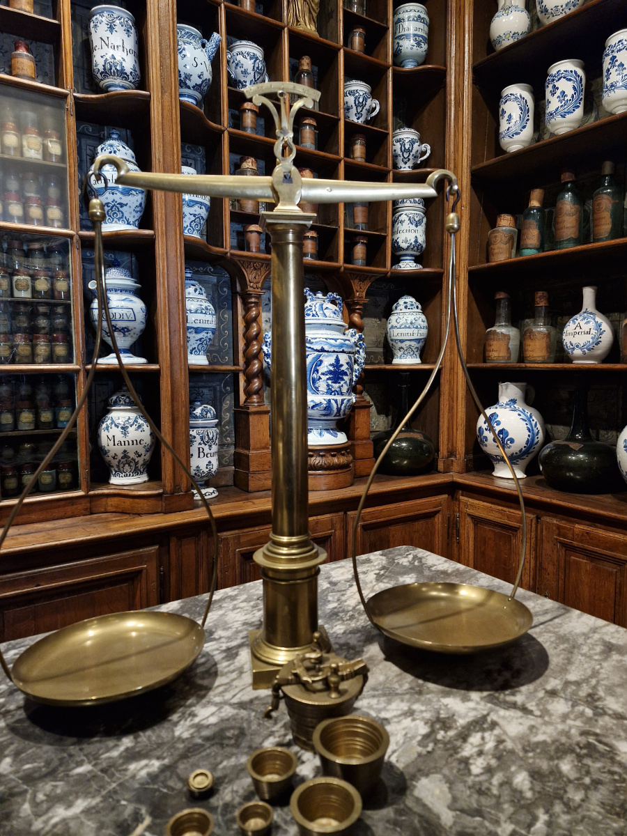 L’Apothicairerie royale conservée dans la villa est un héritage direct de l’Hôpital général royal édifié par Louis XIV en 1681, ainsi que de la Charité fondée par la reine Marie-Thérèse dix ans plus tôt. On parle ici d’un ensemble patrimonial remarquable, avec plus de 230 pièces de faïence des XVIIe et XVIIIe siècles, des verreries, des instruments de mesure, des sculptures et des boiseries d’origine. Le mot “apothicairerie” désigne l’ancien espace où l’on préparait et conservait remèdes, poudres, sirops et plantes médicinales. Il s'agit là d'un ancêtre de la pharmacie. Classée au titre des Monuments historiques, cette apothicairerie a été déplacée au 19e siècle dans le nouvel hôpital avant d’être donnée à la Ville de Saint-Germain-en-Laye, qui la conserve aujourd’hui dans la Villa Eugénie-Désoyer.
