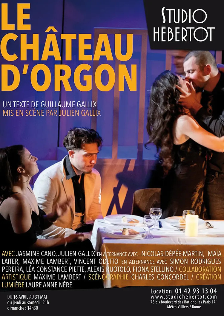 С Замъкът на Оргон или удареният прогрес, Гийом Галик представя първата си комедия, която ясно заявява връзката си с големите имена във френския комичен театър. В същото време пиесата се включва в съвременните разговори и теми. Представлението е на цирковата сцена Studio Hébertot и ще продължи до 31 май 2026 година.