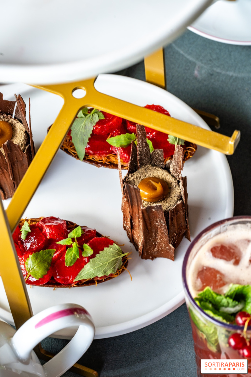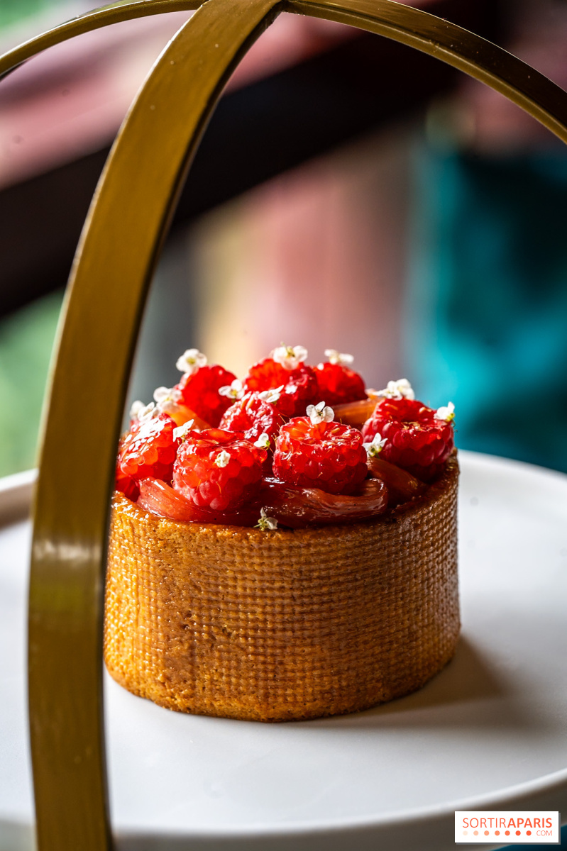 Barquette fraise agastache е свежо и цветно творение. Във формата на малка лодка, препратка към лодките, които някога са плавали по езерата, този тарт съчетава хрупкав сладък сладкиш, топящ се бадемов крем и конфи от агасташ - малко познато растение с леко анасонови нотки. Ягодов мармалад и пресни плодове балансират цялото изделие, подчертано от няколко листа агасташ за свеж билкови нюанси. Харесва ни хрупкавостта на цялото ястие, осигурена от сладкиша и подложката от кадаиф, както и свежестта без излишна захар, осигурена от маринованите ягоди. Агасташът не е просто декорация, а придава истински аромат на цялото ястие.