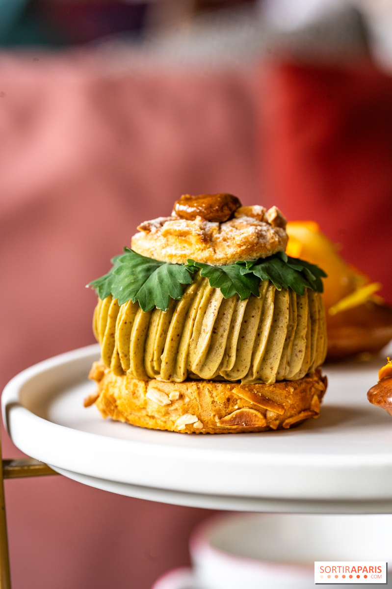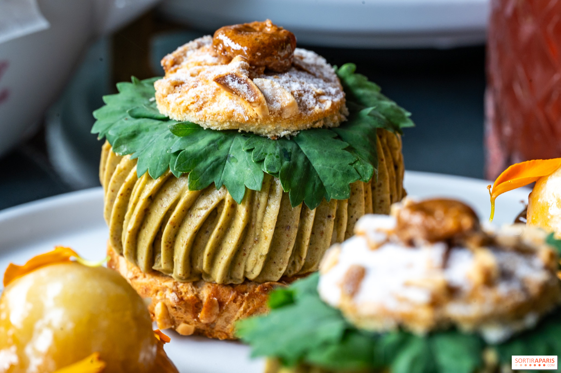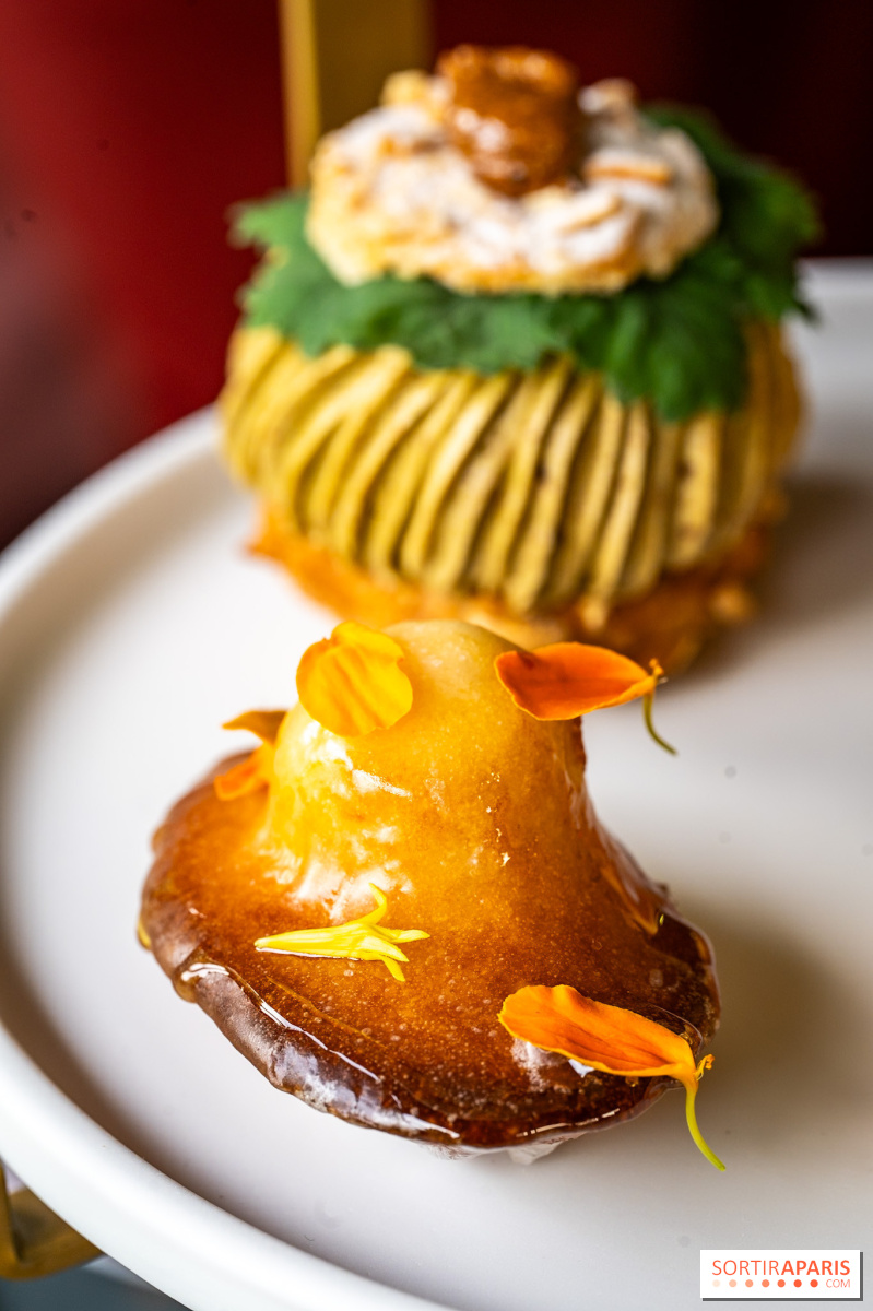 След това ни изненадва " Париж-Брест" с бурнет- знак за историята на мястото. Наистина, Вил д'Аврай е бил финалната линия на етап от първата Обиколка на Франция през 1903 г., така че е трудно да го пропуснем. Но Баптист не се задоволява с класическа интерпретация. Не позволявайте на цвета да ви заблуди, това не е шамфъстък, а Primprenelle. Това диворастящо растение с тревист и ядков вкус придава фин и изненадващ растителен привкус. Елегантен сладкиш, който дискретно повтаря тарталетите с примпренел, орехи и карамел, сервирани в ресторанта Le Corot, удостоен със звезда "Мишлен" - ние го обожаваме.