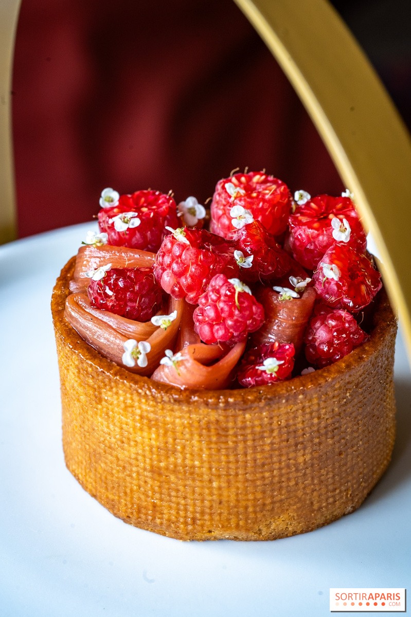 След това преминаваме къмтартата за споделено ползване, която наистина е отлична. В стил чийзкейк, тя съчетава бъзов цвят от Fromage Blanc със задушен ревен и пресни малини. С ниско съдържание на захар, плодов и добре балансиран. Всичко в този десерт е покана за споделяне. Баптист се връща към една класика с леко докосване: фина основа от къс хляб, ароматен крем fromage blanc и сезонни плодове. Бъзът, набран близо до Étangs de Corot, добавя дискретна флорална нотка, която се съчетава добре с киселинността на ревена. Сервиран цял, този тарт е просто и вкусно лакомство. Десерт без излишъци, предназначен за приятелско общуване.