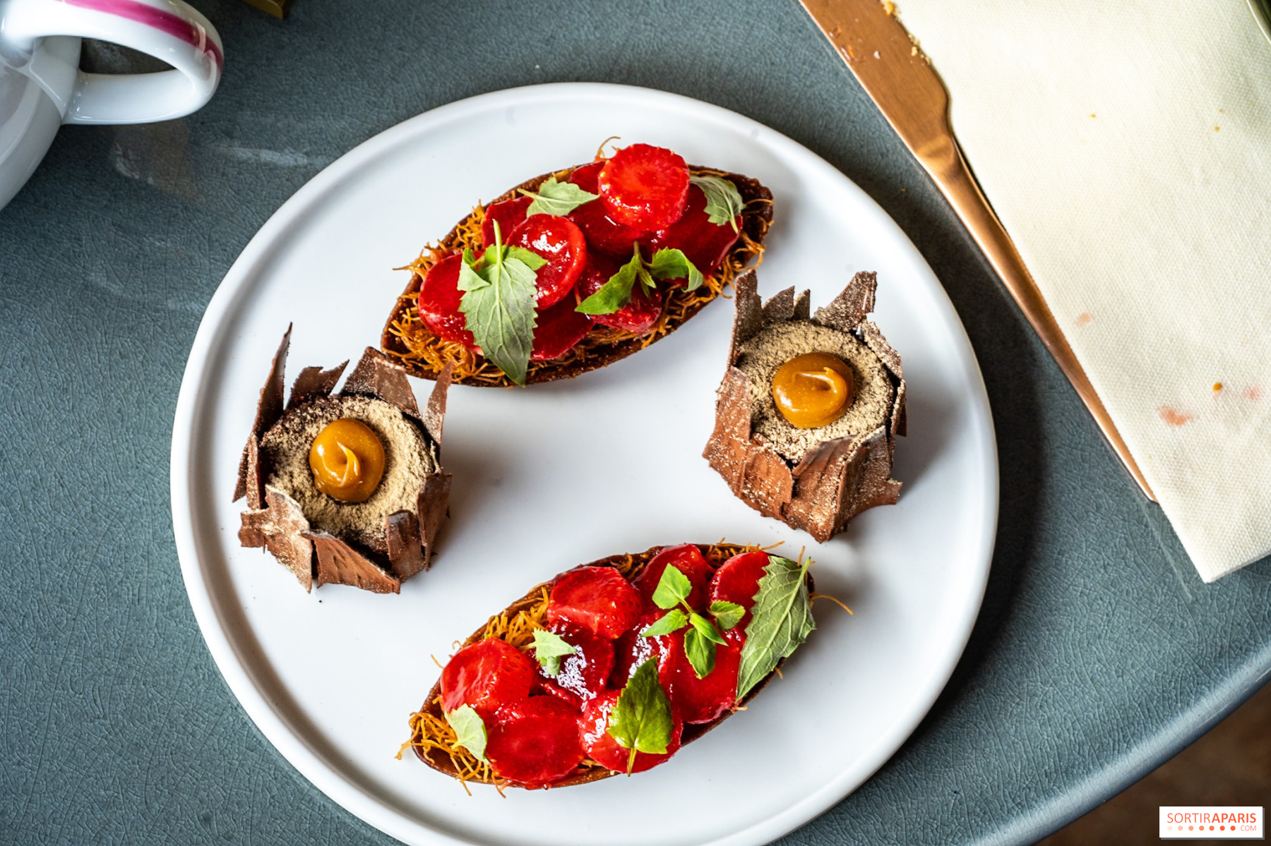 И накрая, за любителите на по-интензивни вкусове,Entremet chocolat caramel е успокояващо лакомство. Този кремообразен, топящ се десерт с формата на дънер, дискретно напомнящ за горите на Fausses-Reposes, съчетава мек карамел с аромат на зелен кардамон, топяща се шоколадова основа и нотка на fleur de sel. Трябва да се признае, че той е доста силен и трябва да бъде запазен за любителите на шоколада.